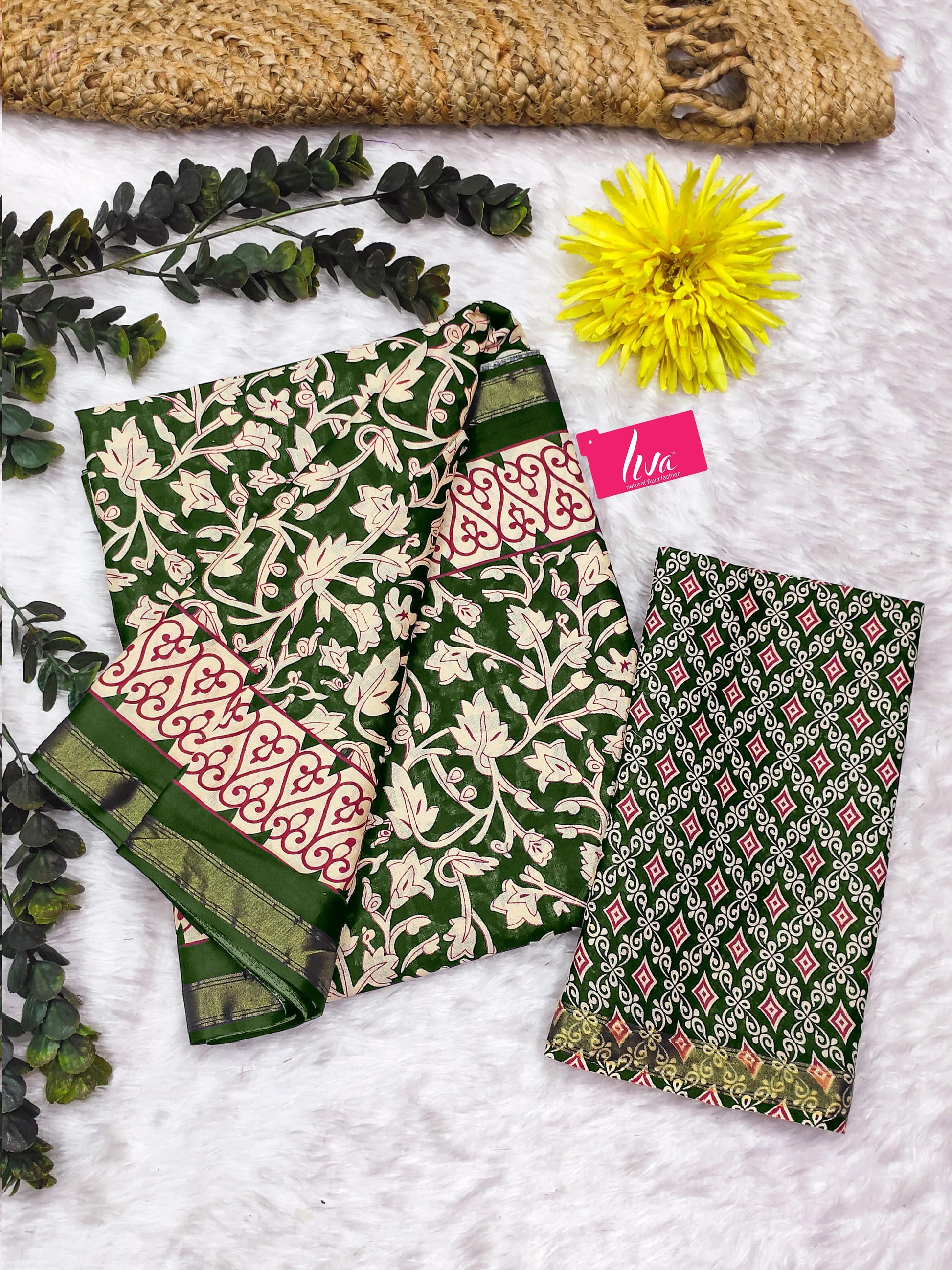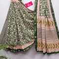 Green Pure Soft Mal Mal Cotton Bagru Block Print Saree