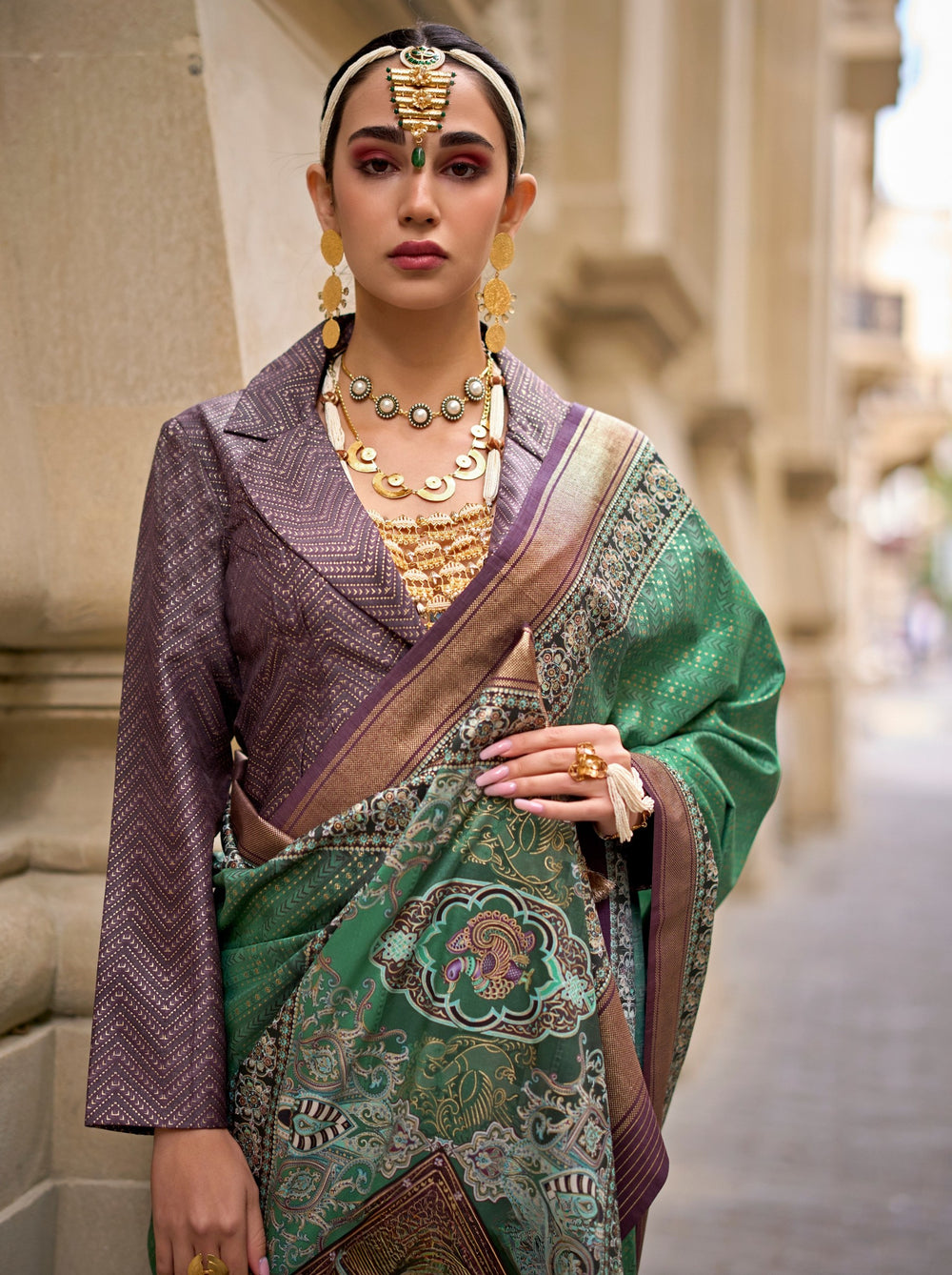Green Pure Viscose Silk Blend Foil Print Saree Green Pure Viscose Silk Blend Foil Print Saree