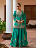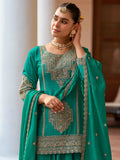 Green Real Chinon Embroidered Sharara Suit with Dupatta