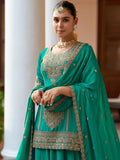 Discover timeless sophistication with this Green Real Chinon Embroidered Sharara Suit. Crafted from premium Real Chinon fabric, this ensemble delivers an exquisite drape and feather-light comfort ideal for all-day wear. The intricately embroidered top features meticulous hand-finished detailing, while the gracefully flared Sharara creates an elegant silhouette that flows effortlessly with movement. Complemented by a coordinating Real Chinon dupatta, this three-piece set seamlessly transitions from festive celebrations to daytime wedding functions and intimate family gatherings. A refined choice for those who appreciate authentic craftsmanship and traditional elegance.