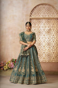 Green Tissue Bridal Lehenga with Jacquard Dupatta