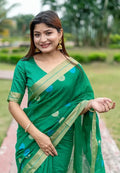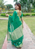 Green Pure Linen Silk Jamdani Saree