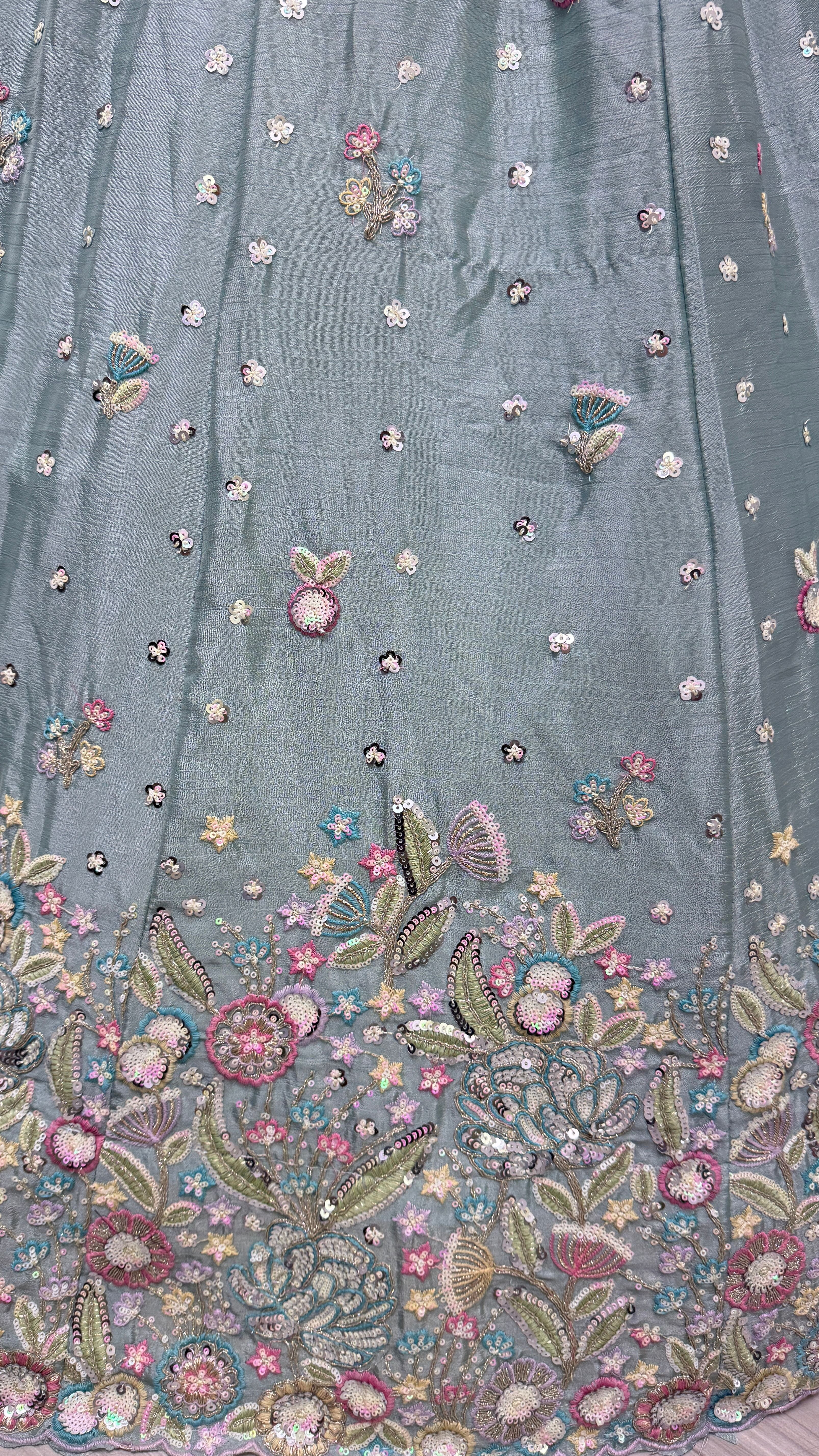 Grey Colour Bridal Silk Lehenga with Heavy Chinnon Work Multithread Work Lehenga Choli