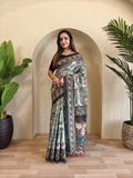 Description - soft cotton chanderi sarees with kalamkari digital print pattern tassels over the saree.