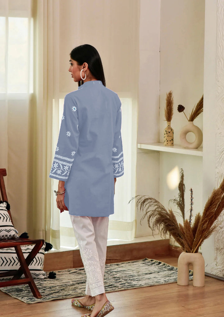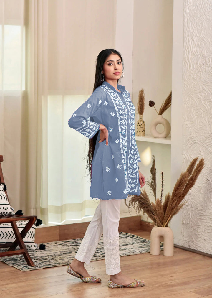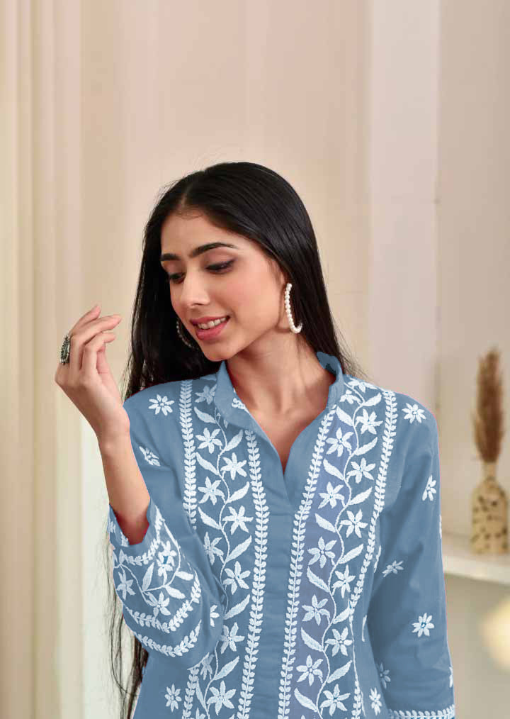 Grey Pure Heavy Reyon with Chikankari Embroidery Work Plazo Suit