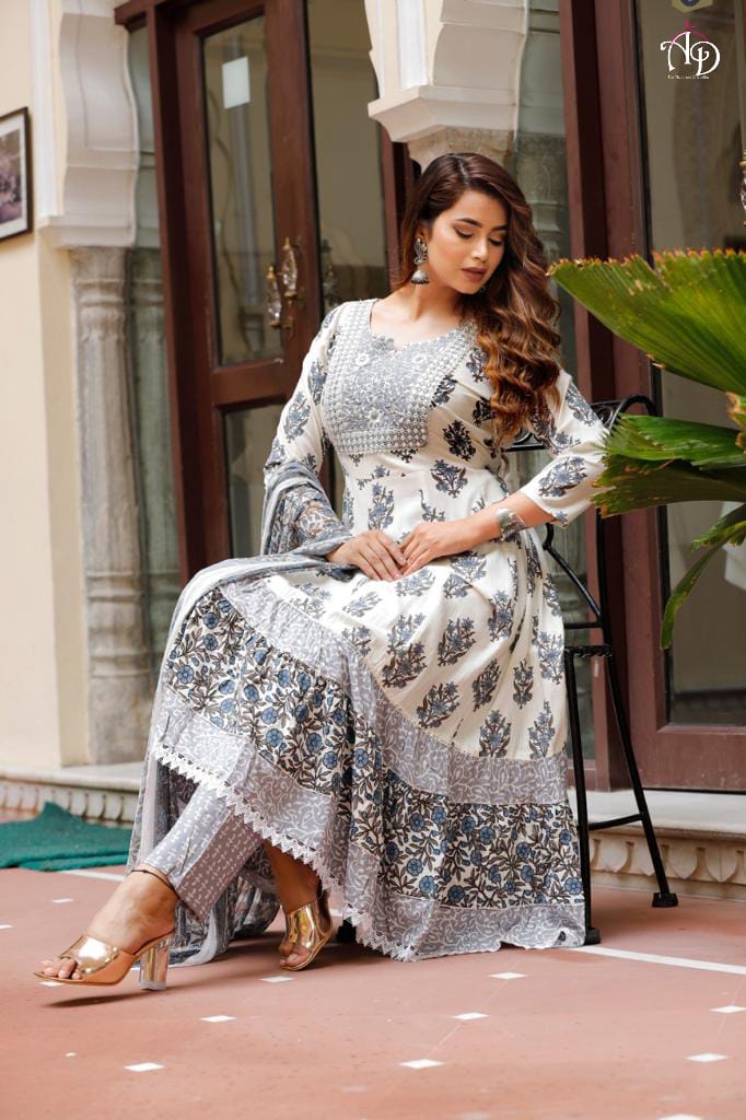 Heavy Rayon Mill Printed Gotta Patti Lace Work Gown