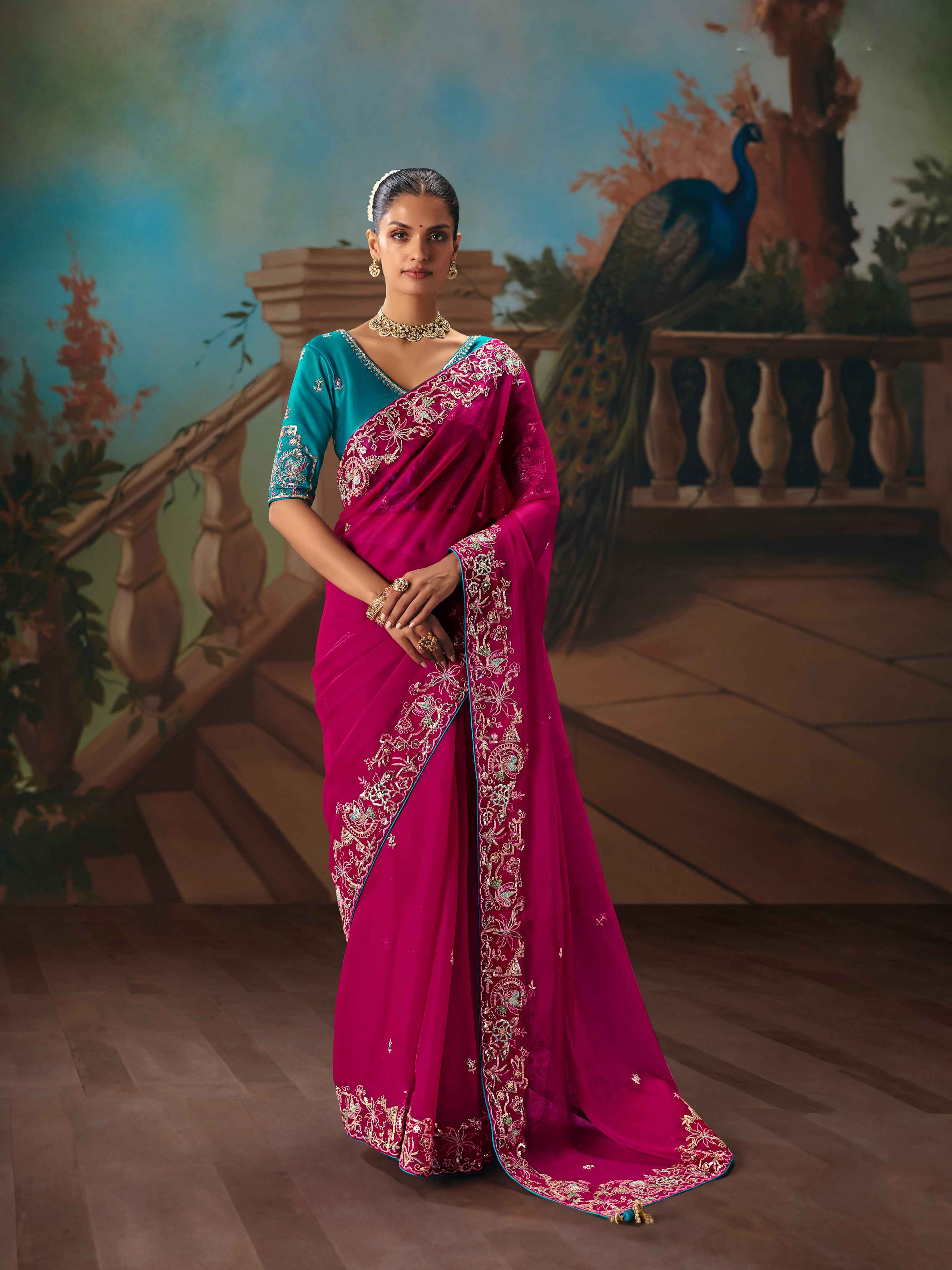 Hot Pink Fancy Saree with Sequins Thread Embroidery