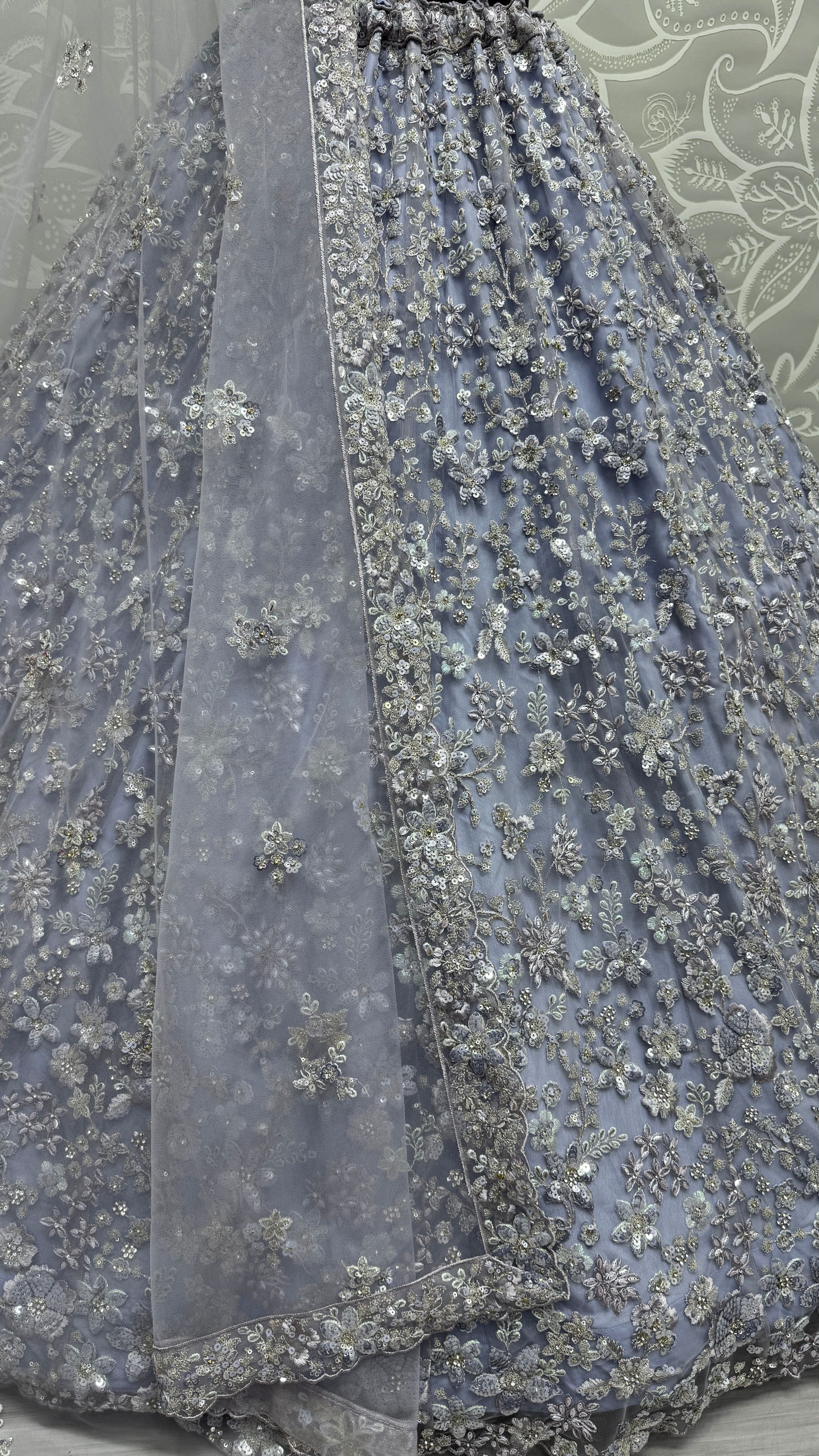 Ice Blue Heavy Soft Net Heavy Multi thread & Sequence work Wedding Bridal Lehenga Choli