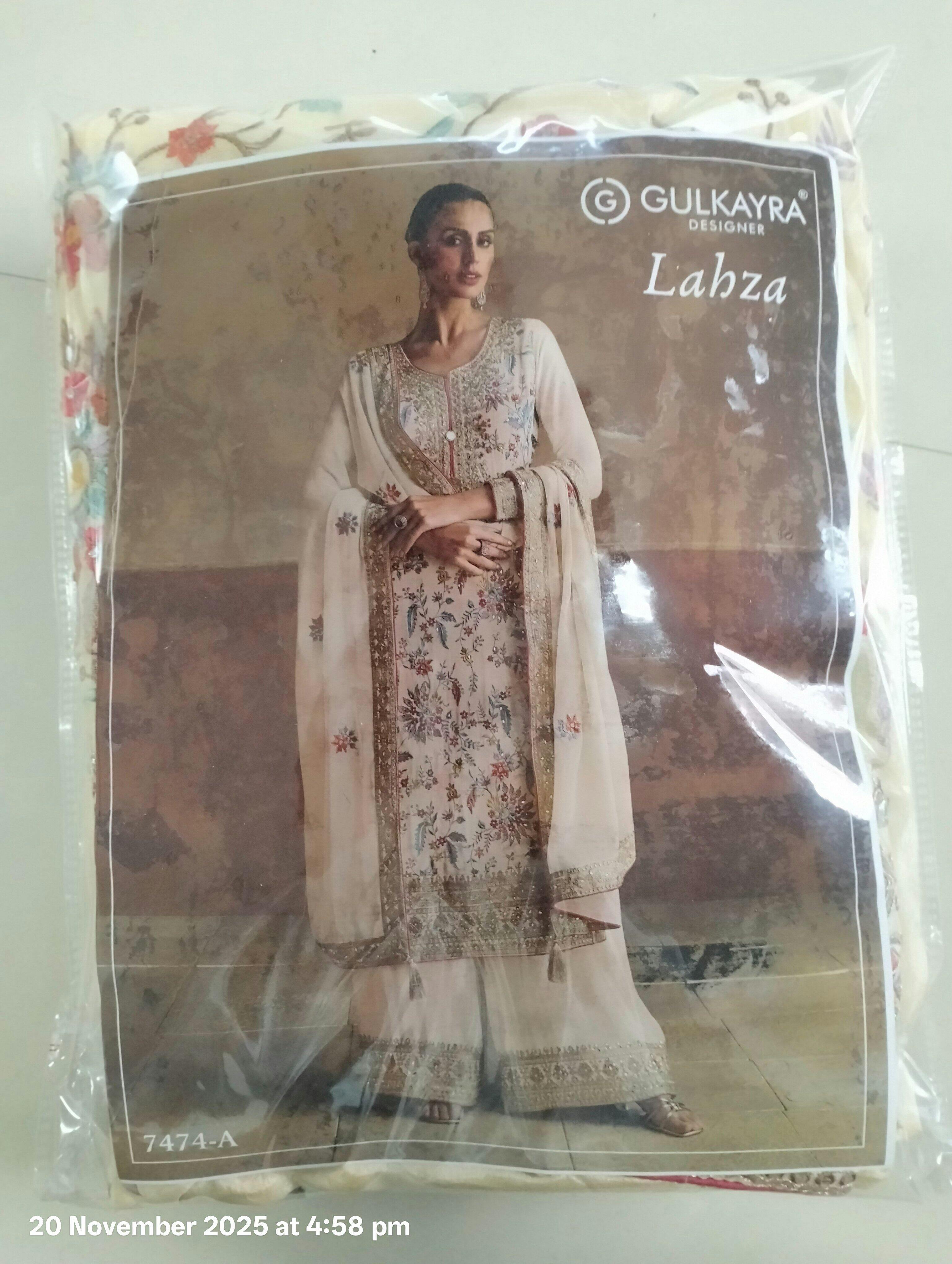 Ivory Chinon Palazzo Suit with Multicolor Embroidery & Chinon Dupatta