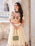 Upgrade your ethnic wardrobe with this luxurious ivory floral embroidered Chinon silk lehenga set, designed for weddings, receptions, and festive celebrations. Crafted from premium Real Chinon Silk, this lehenga set blends royal elegance with intricate craftsmanship, ensuring a breathtaking look at any event.
