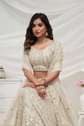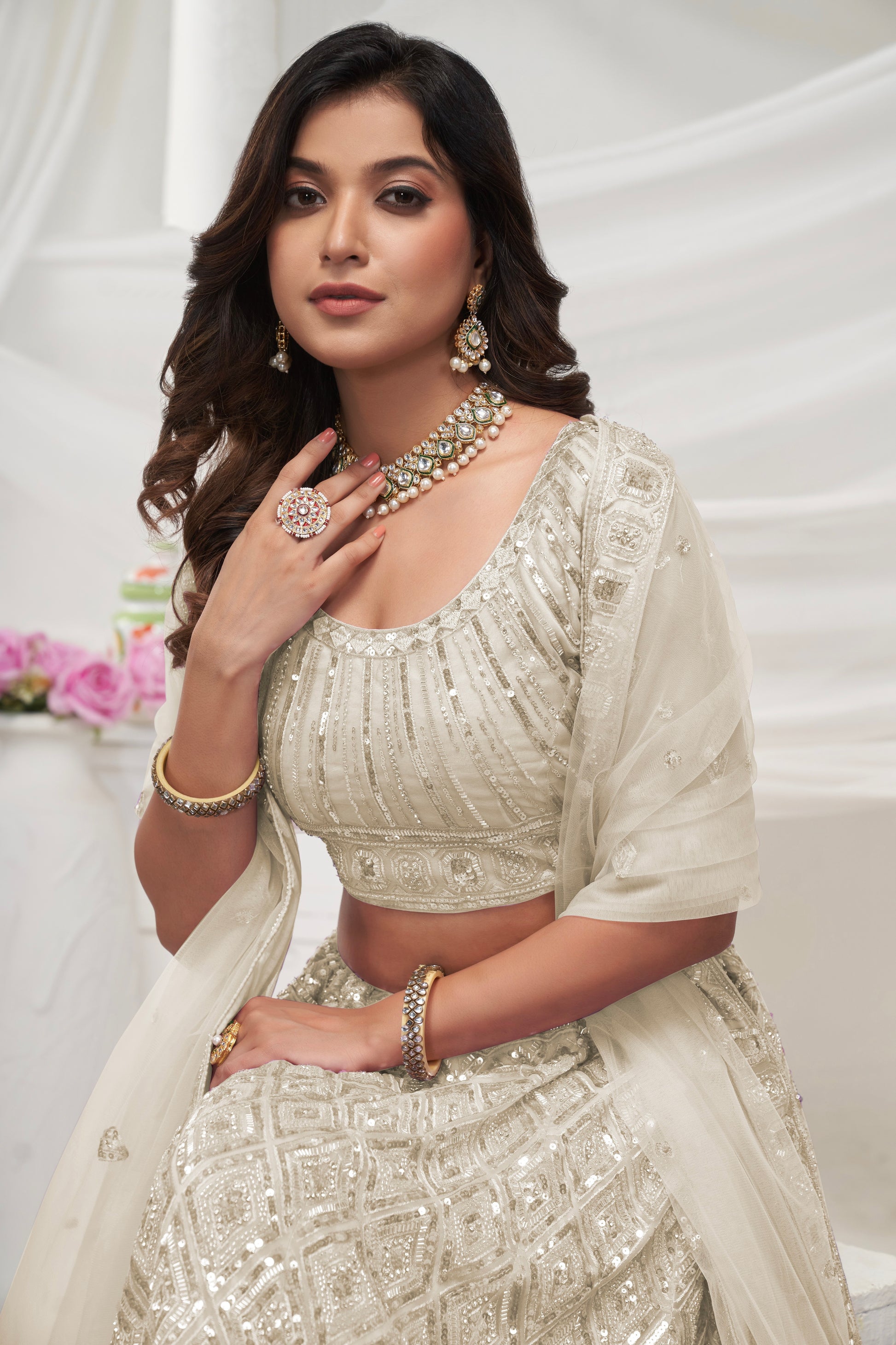 Ivory Soft Net Lehenga Choli Set - Pearl & Diamond Sequin Embroidery