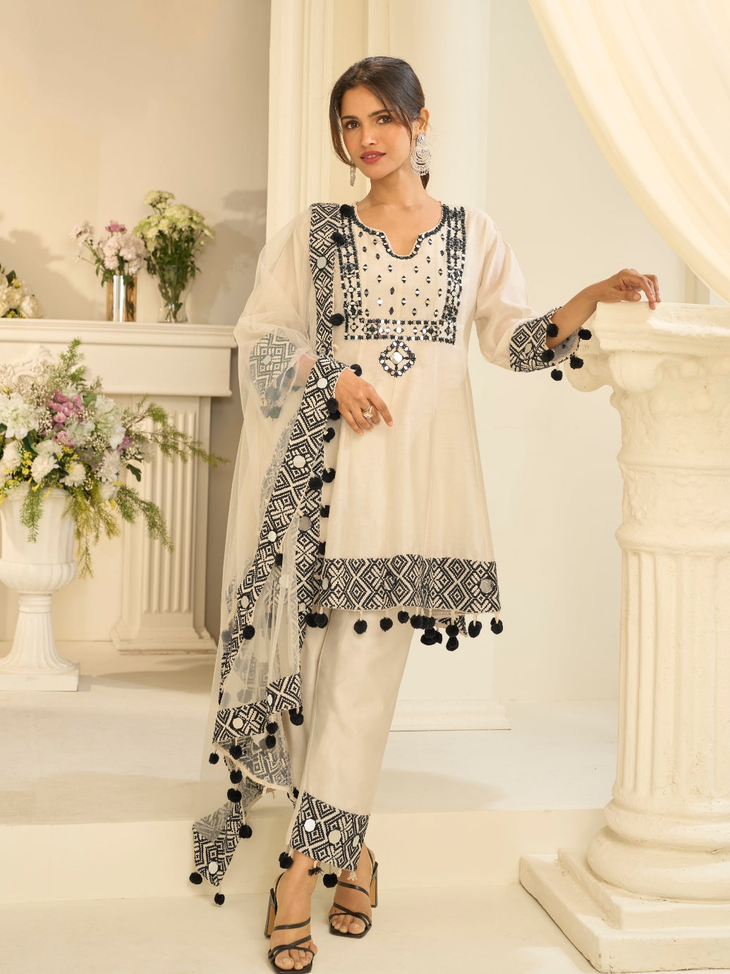 Ivory Straight Suit Set with Mirror Work Dupatta