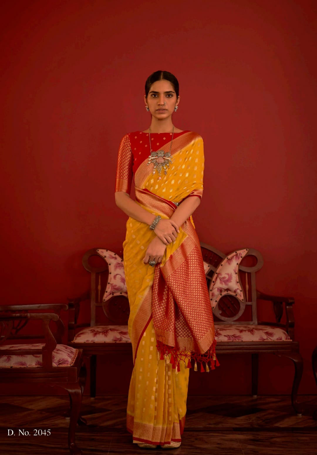 Kimora Sanganer Pure Georgette With Zari Weaving Saree