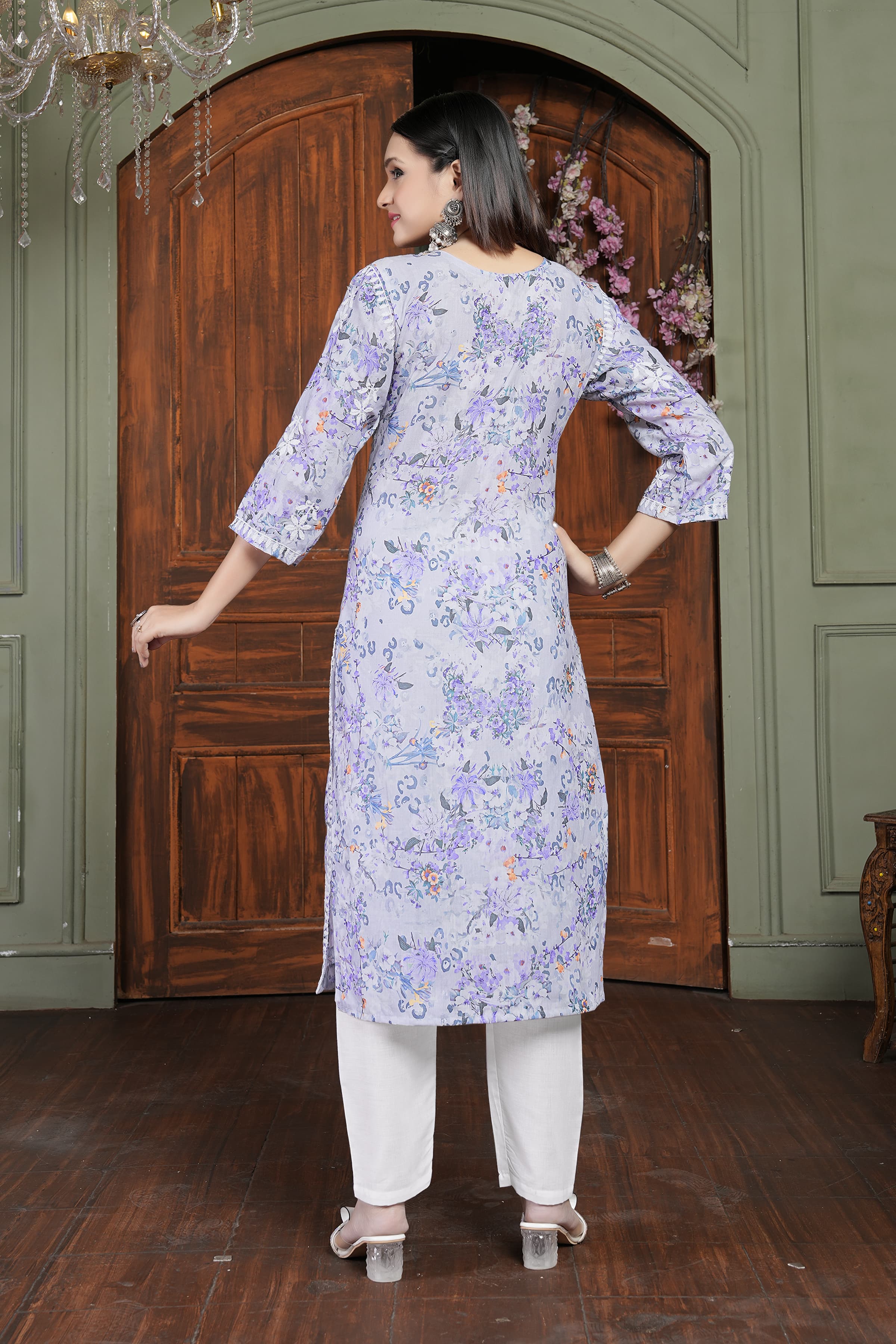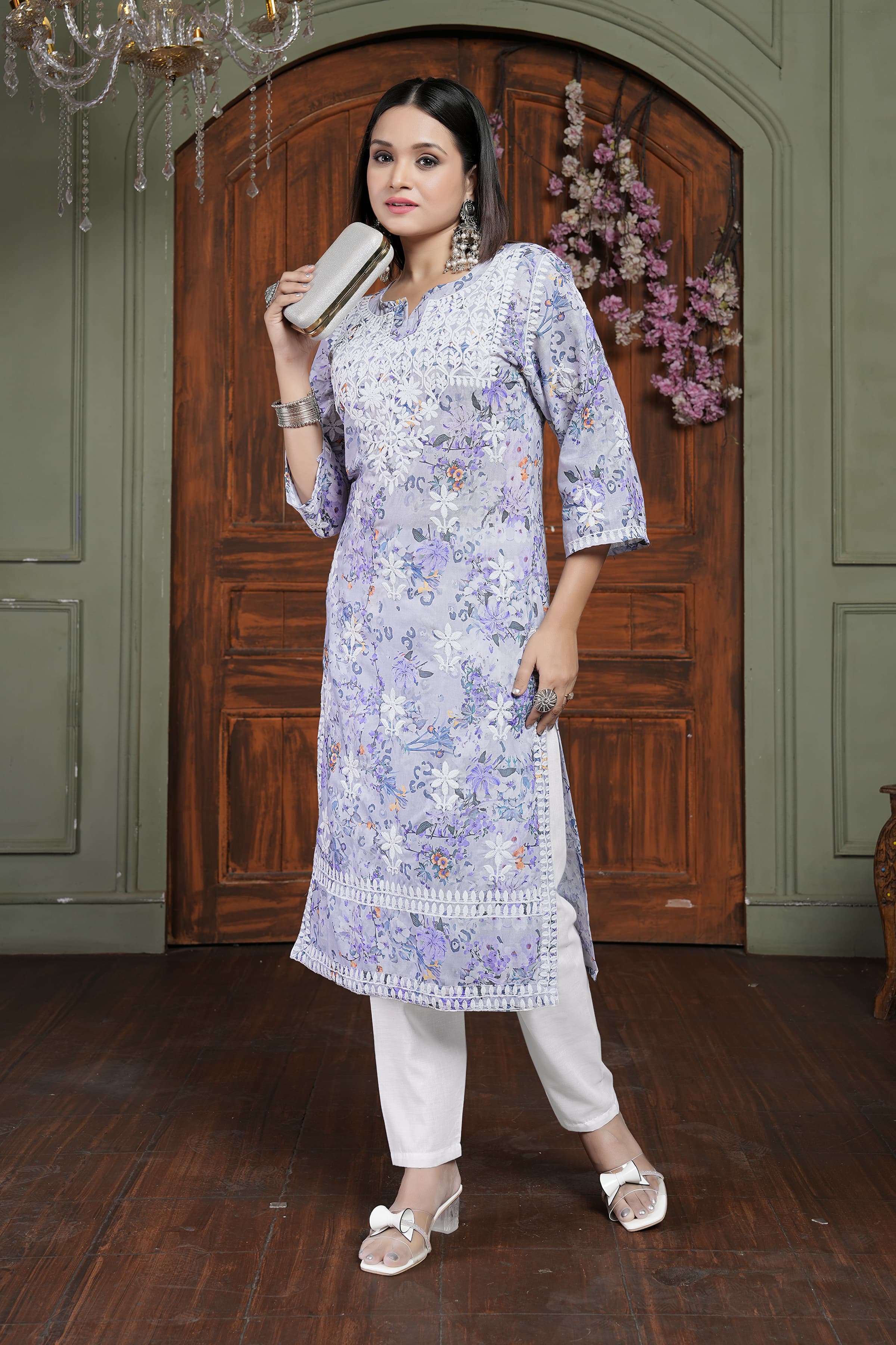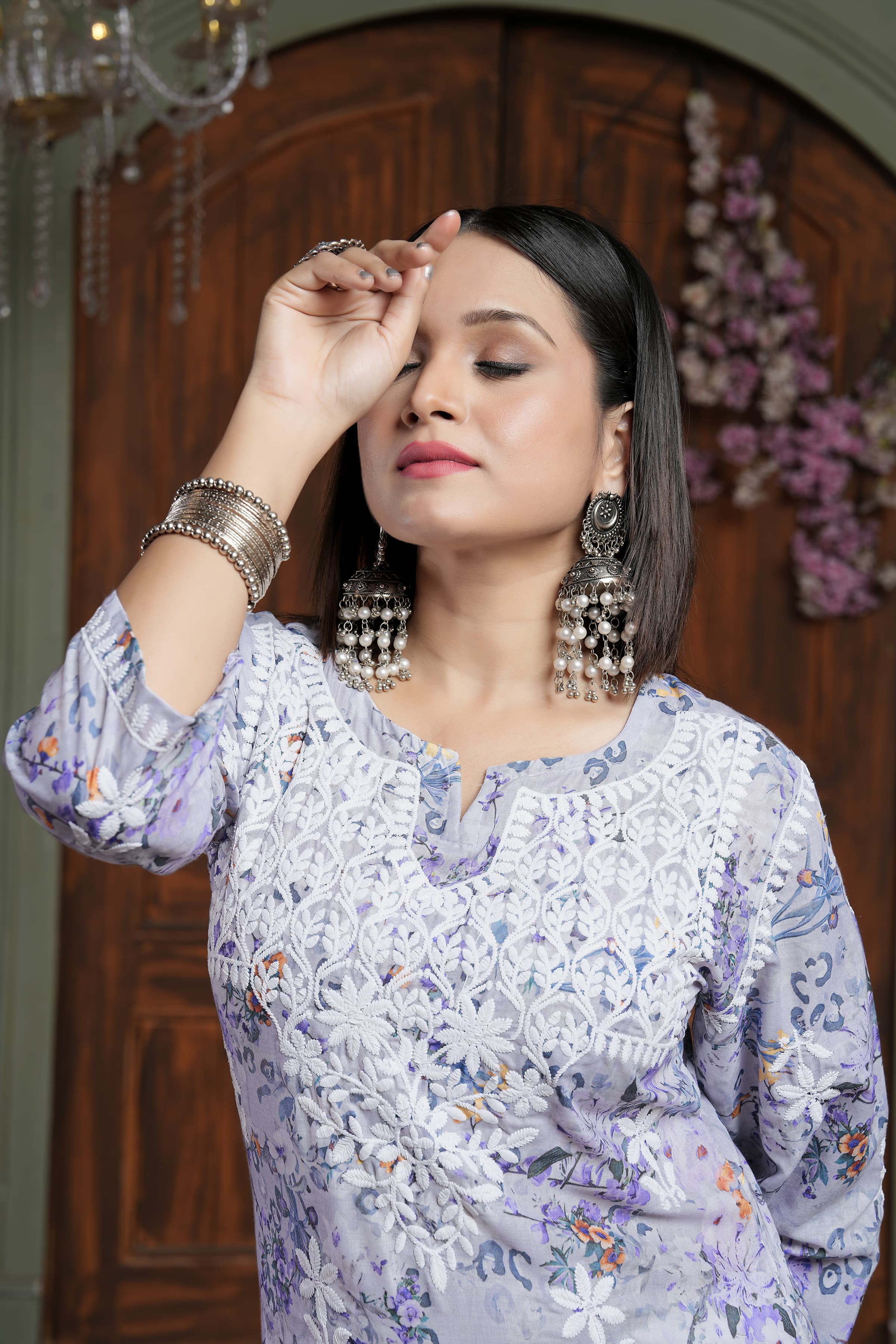 Lavender Pure Heavy Cotton With Digital Print Chikankari Embroidery Work Plazo Suit