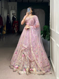 Lavender Pure Net Silk Heavy Sequin Embroidery Net Lehenga Choli