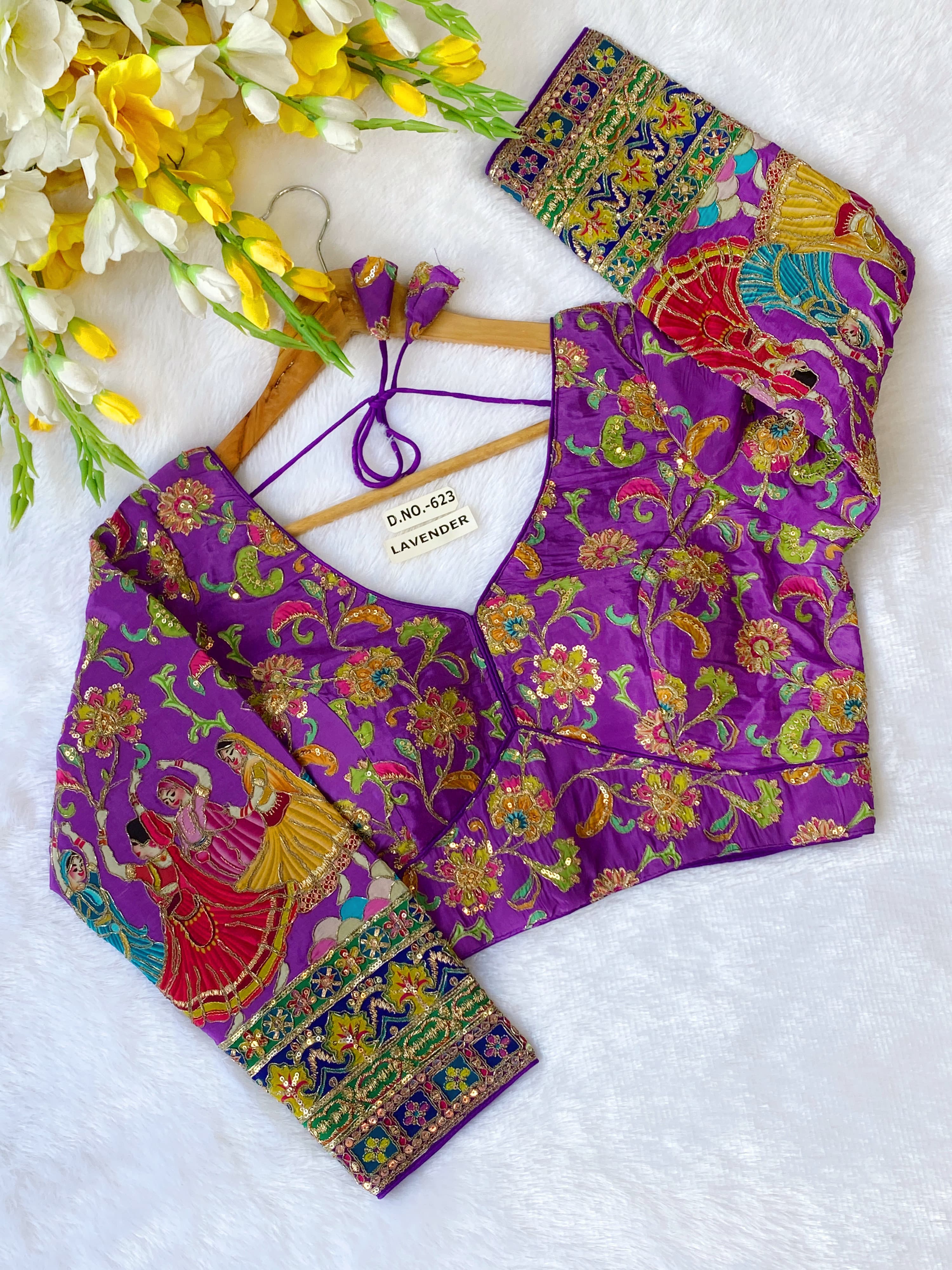 Lavender Pure Pure Soft Crep Viscose Silk Long Sleeves Bridal Blouse