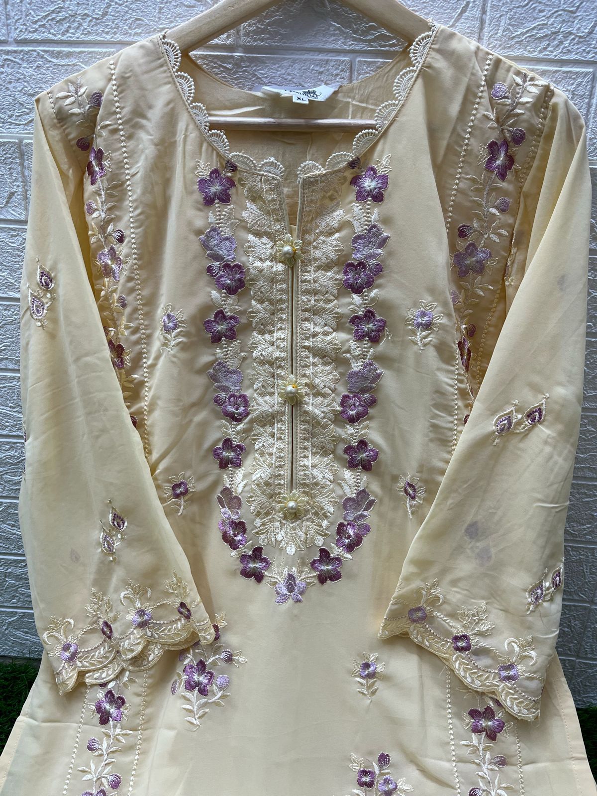 Designer stylish Heavy Embrdry Tunic With Stylish Neck Pattern & also Embroidery In Sleeves.... .....with Glamours Gorgeous Looking In Kurti ...paired with Bottom & Embrdry Organza Duptta