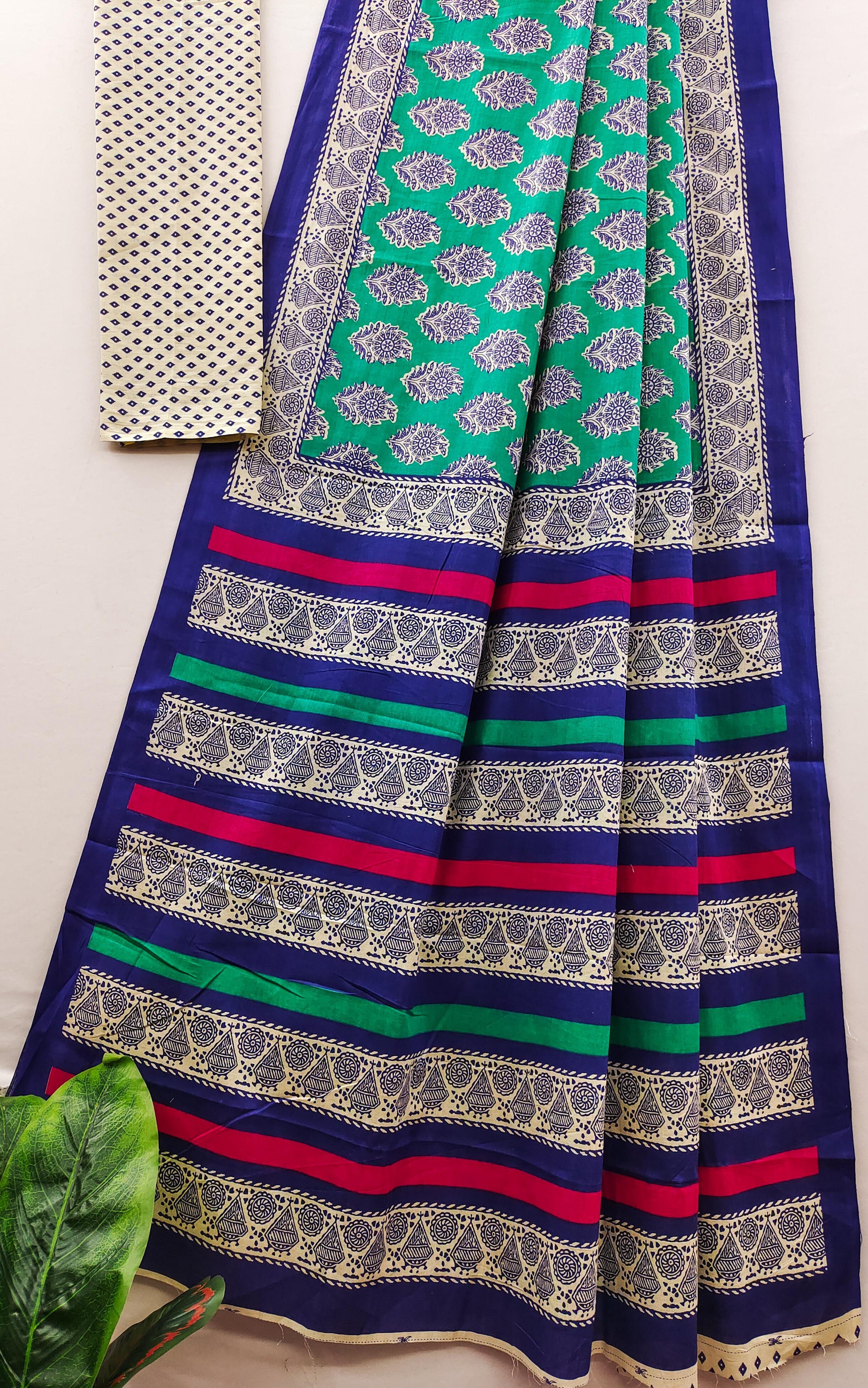 Bagru Block Print Cotton mulmul sarees with blouseΒ