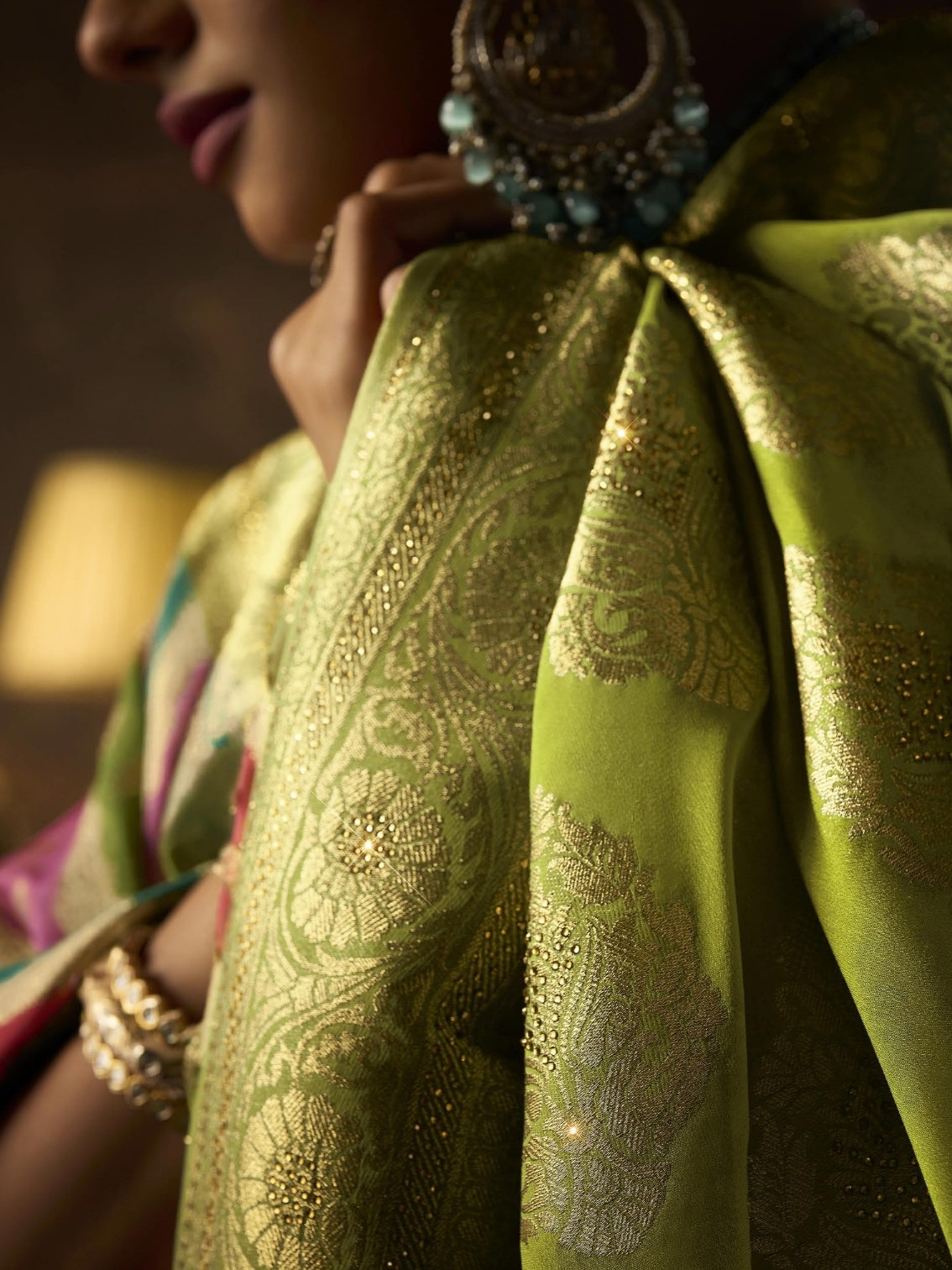 Lime Green Khaddi Georgette Saree with Hand-Brush Print