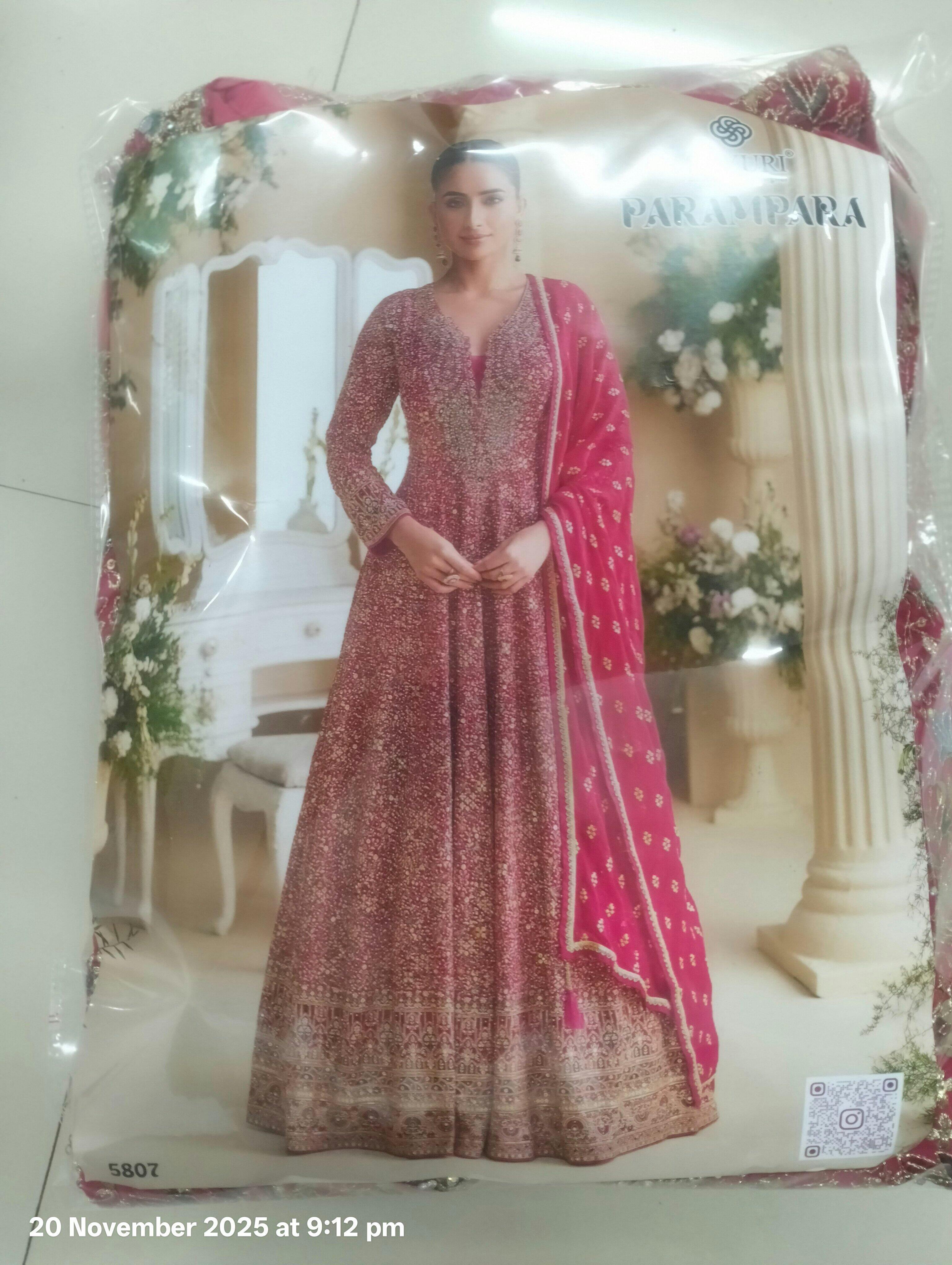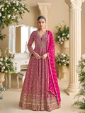 Magenta Heavy Embroidered Georgette Anarkali Gown with Dupatta