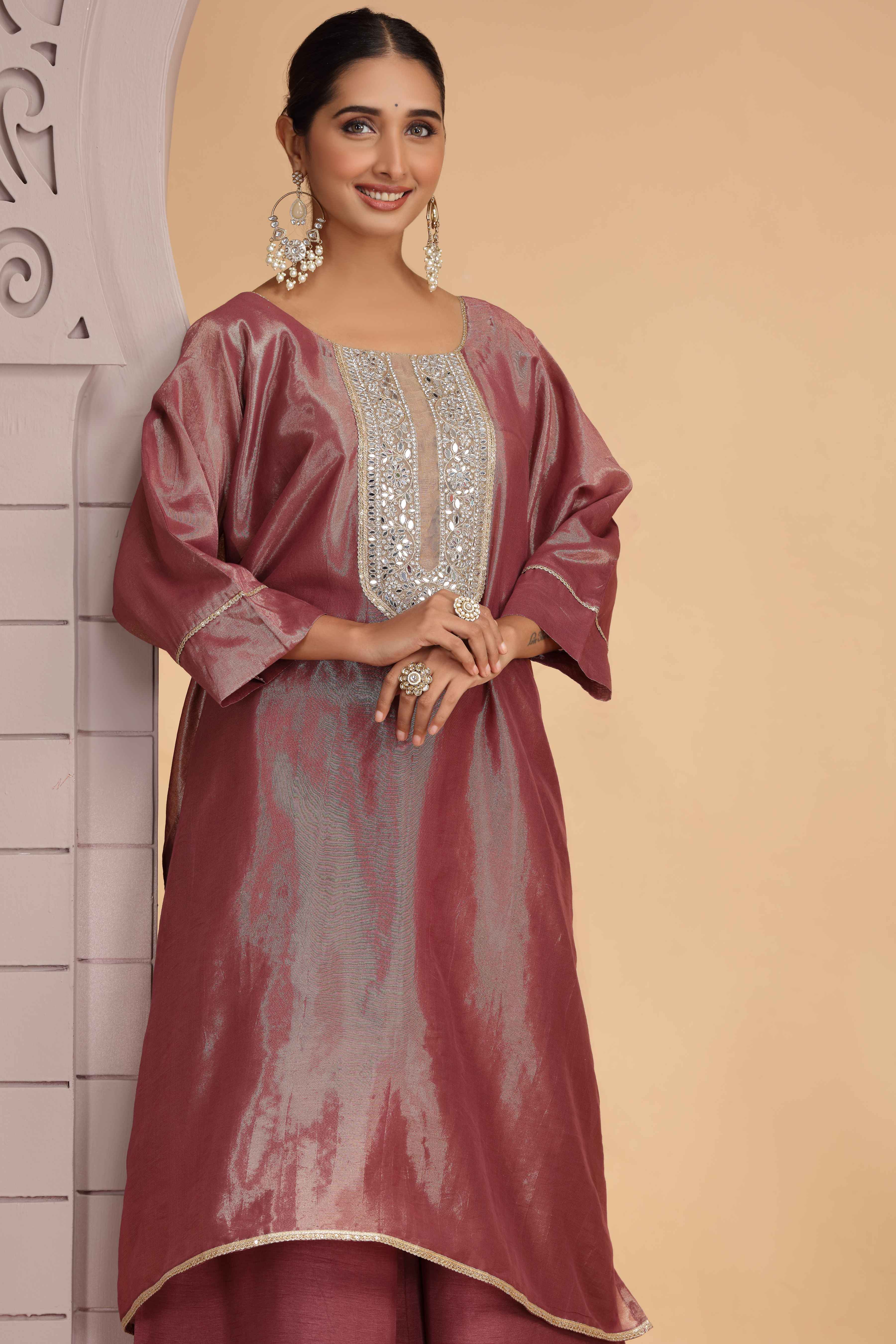 Magenta Orgenza Shimmer A-Line Kurta Set with Palazzo