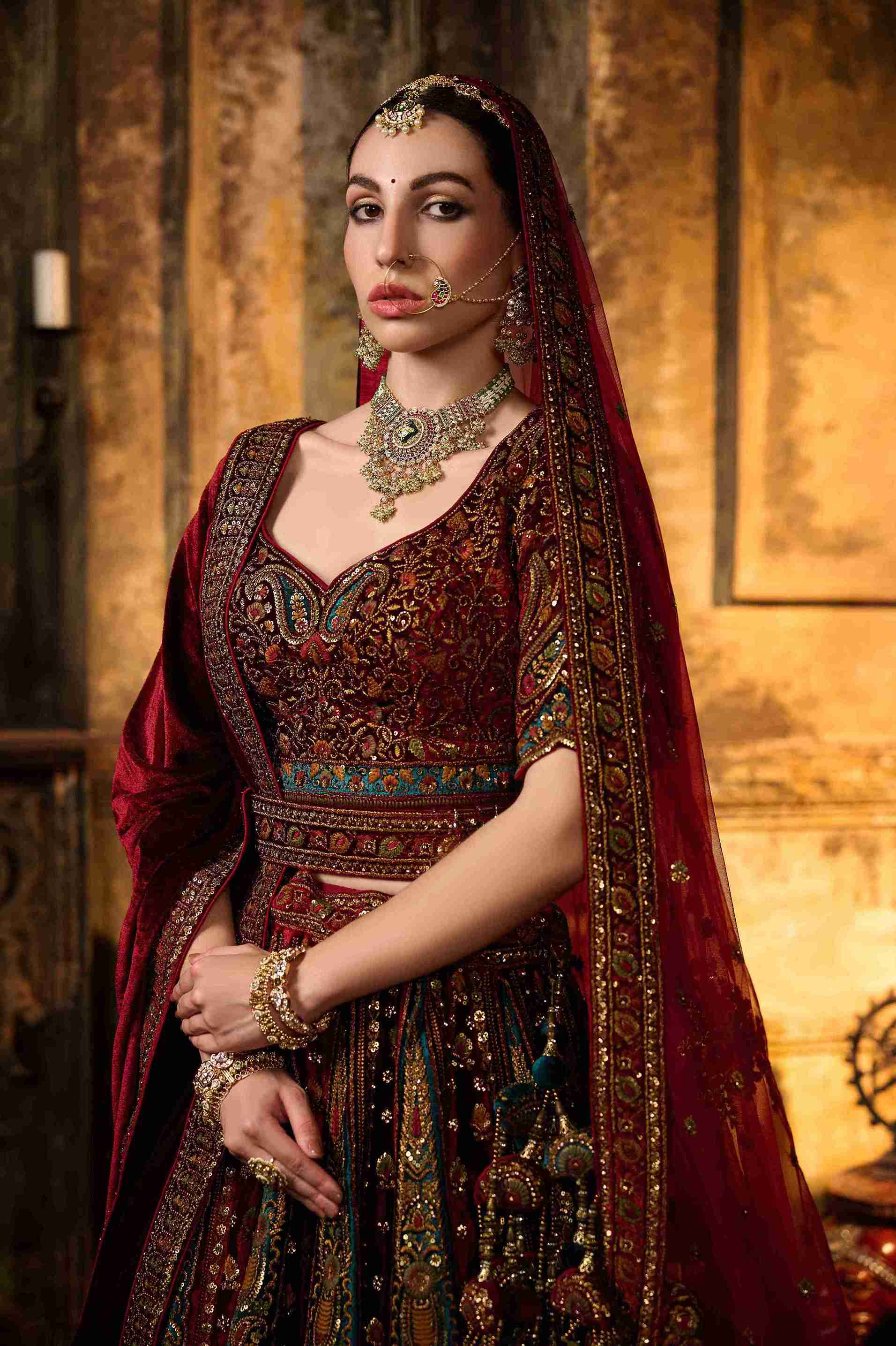 Maroon Embroidered Bridal Lehenga with Heavy Zari & Paisley Work