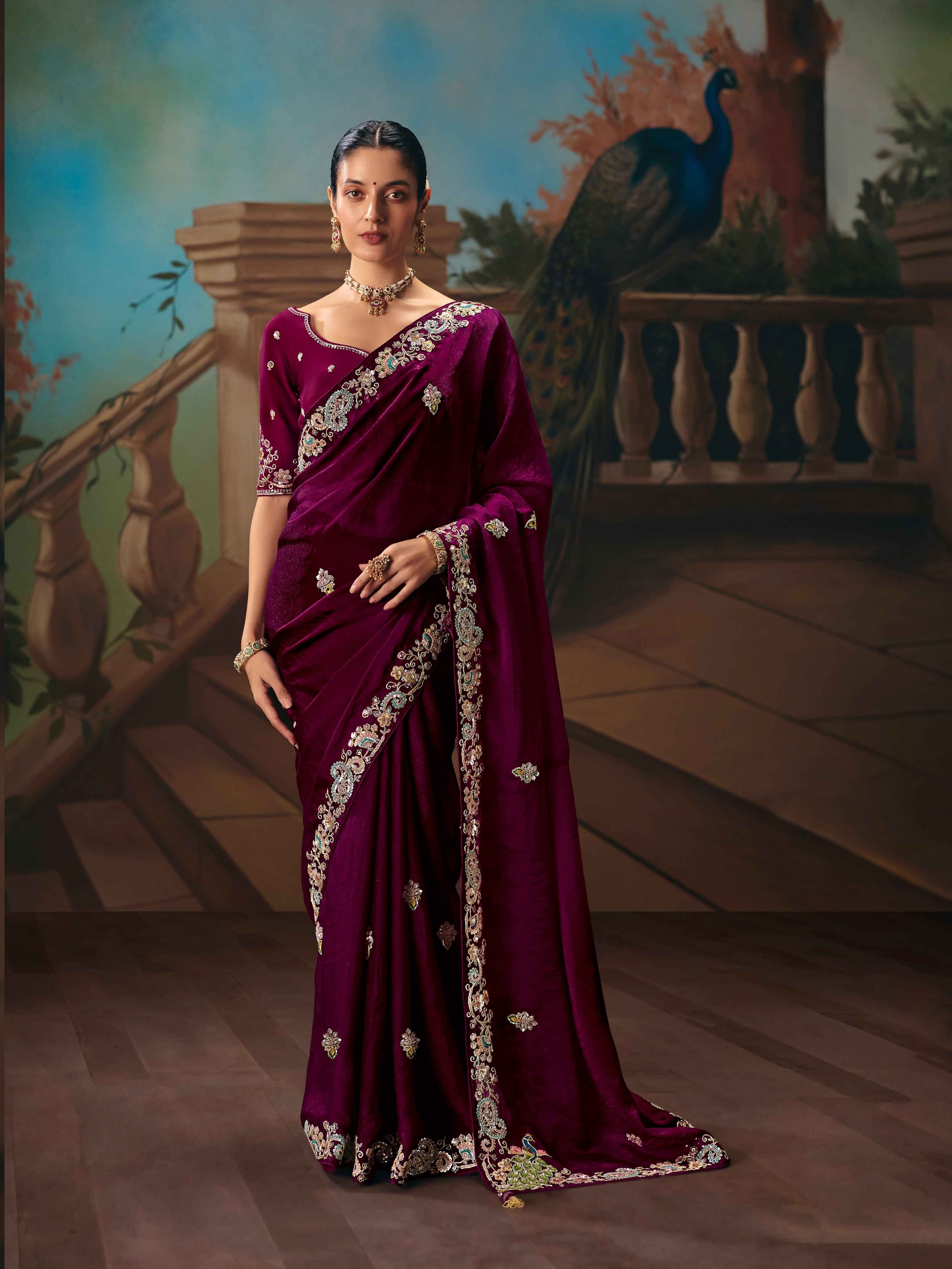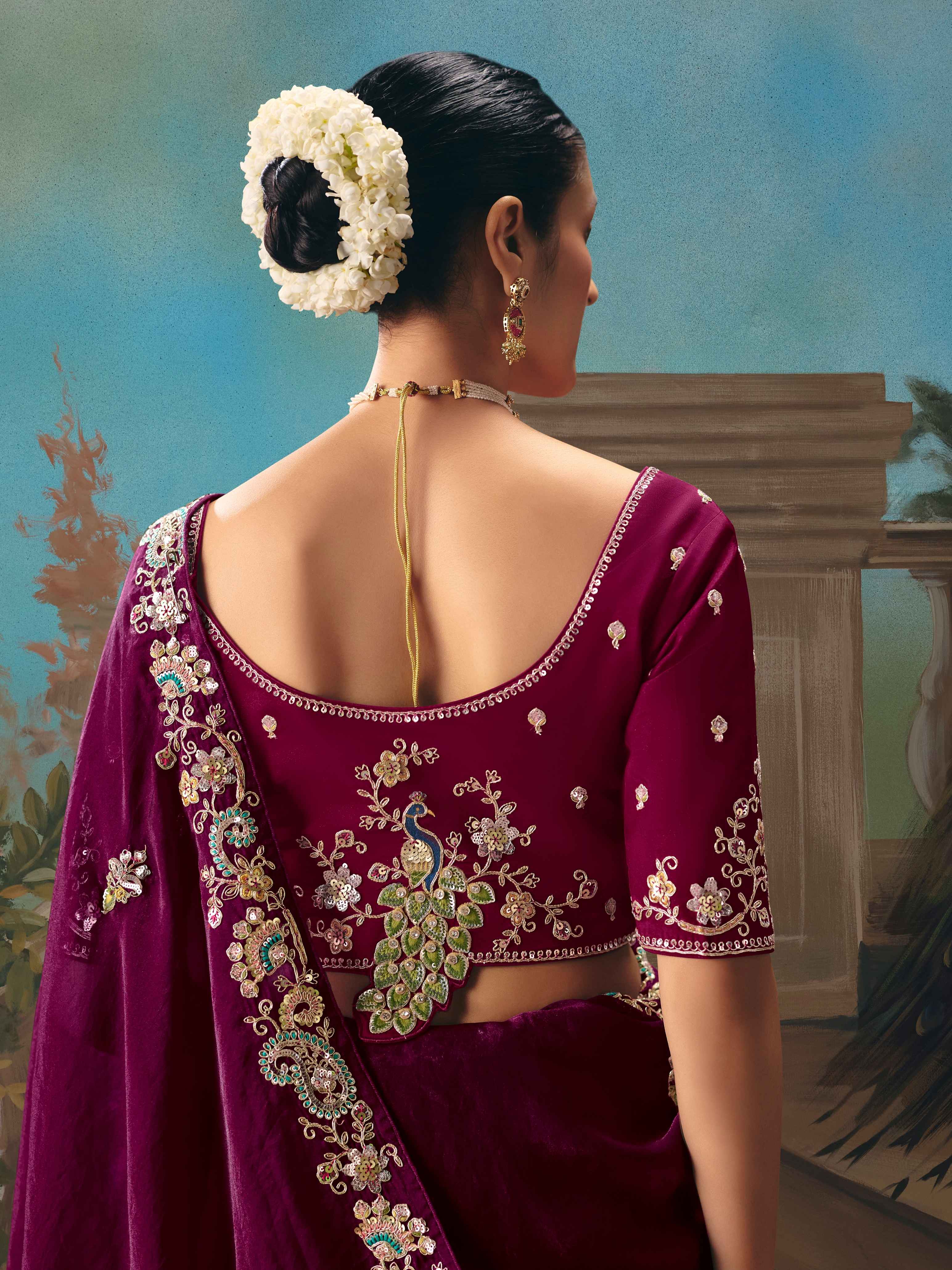 Maroon Fancy Saree with Sequins Thread Butti