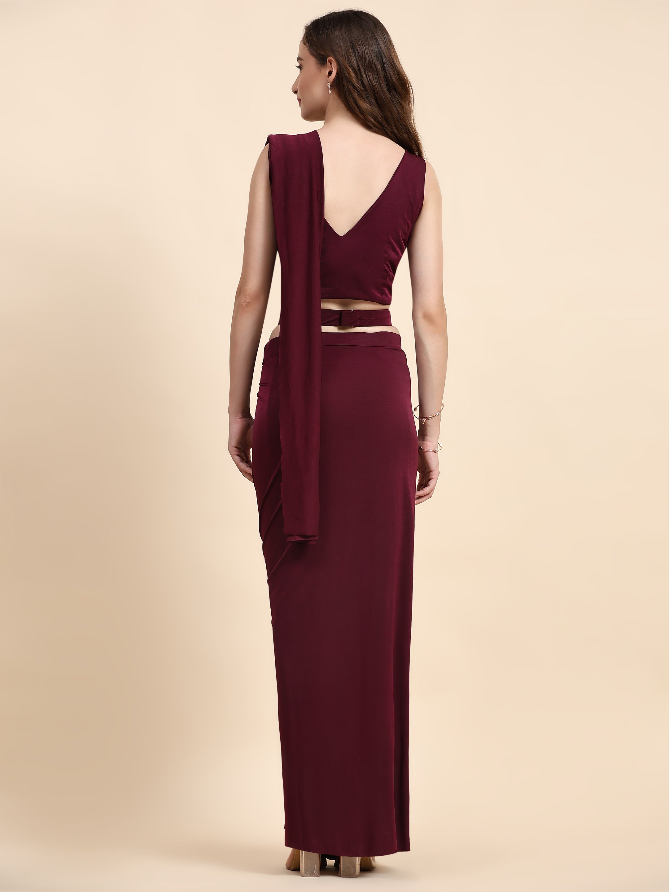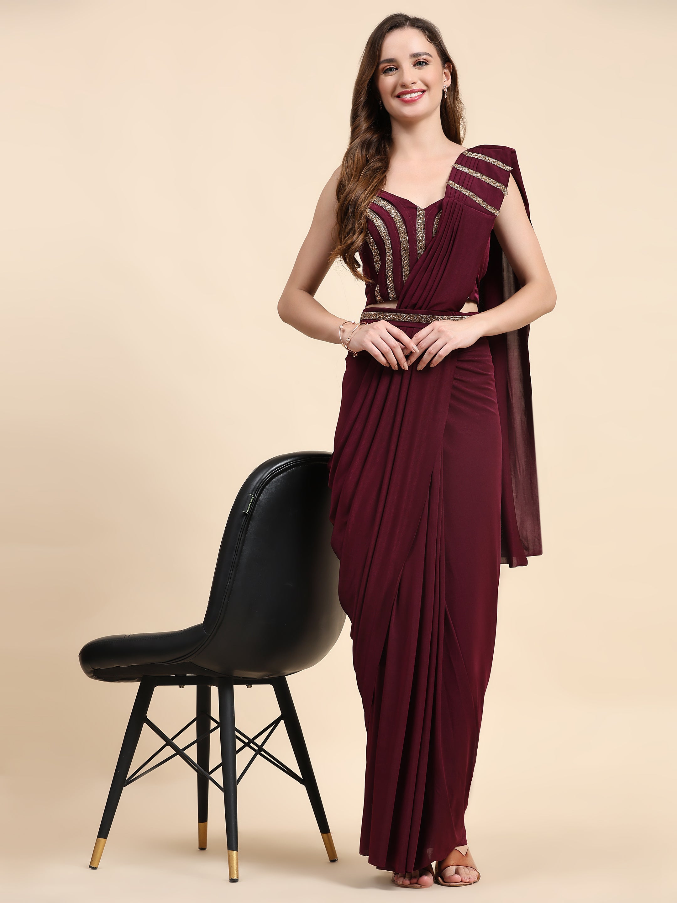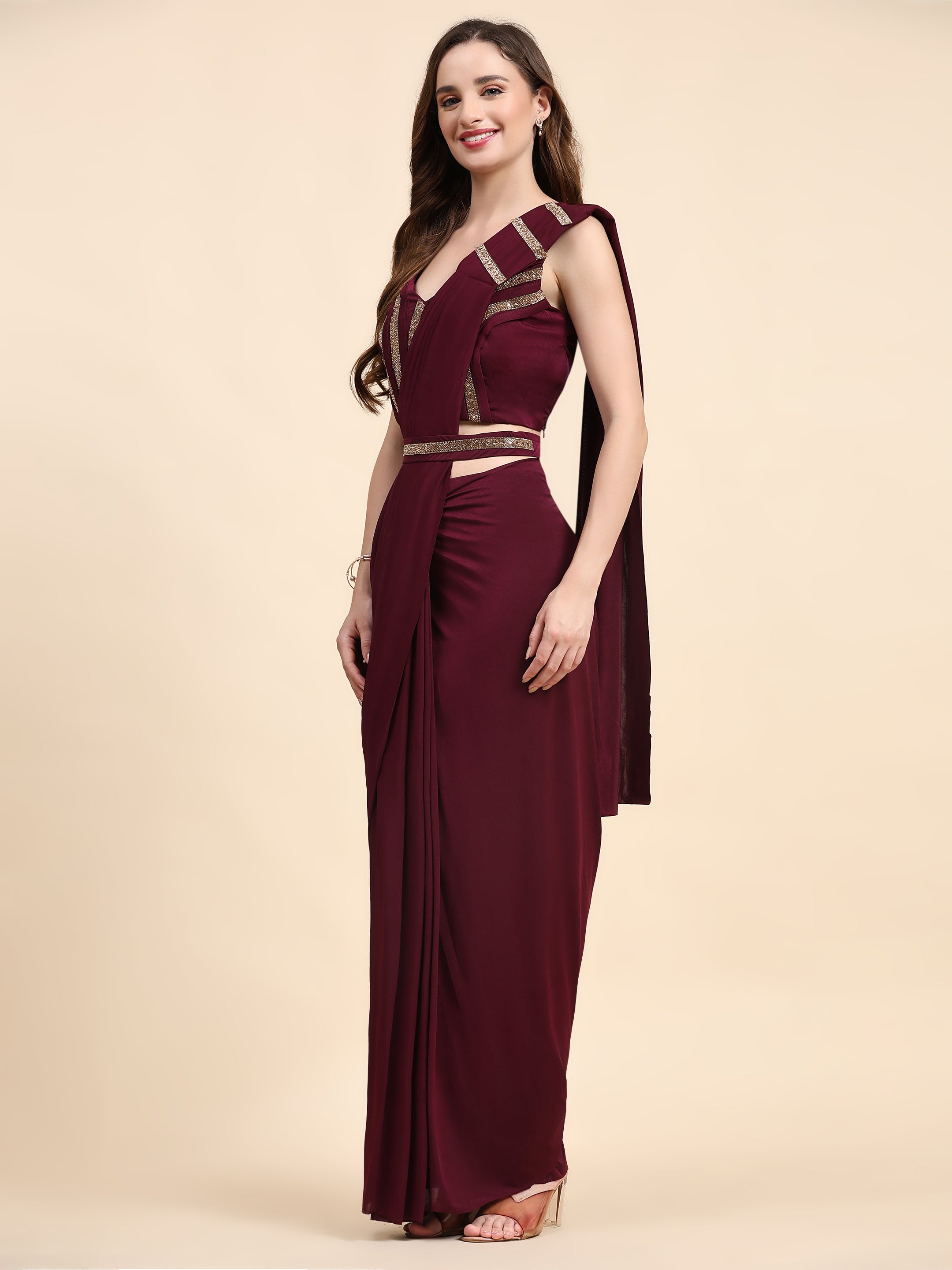 Maroon Pure Imported Crystle Ready-to-Wear Saree