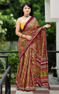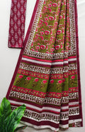 Maroon Pure Soft Cotton Bagru Block Print Saree