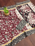 Maroon Pure Soft Cotton Kalamkari Block Print Saree