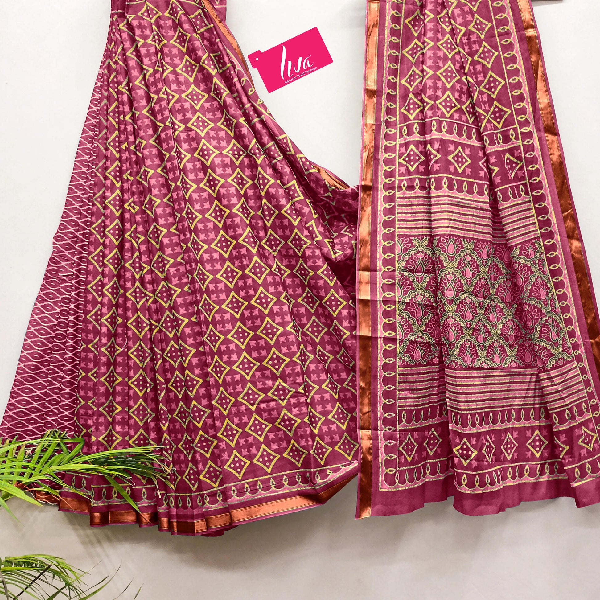 Bagru Block Print Modal Mulcotton sarees with blouseΒ