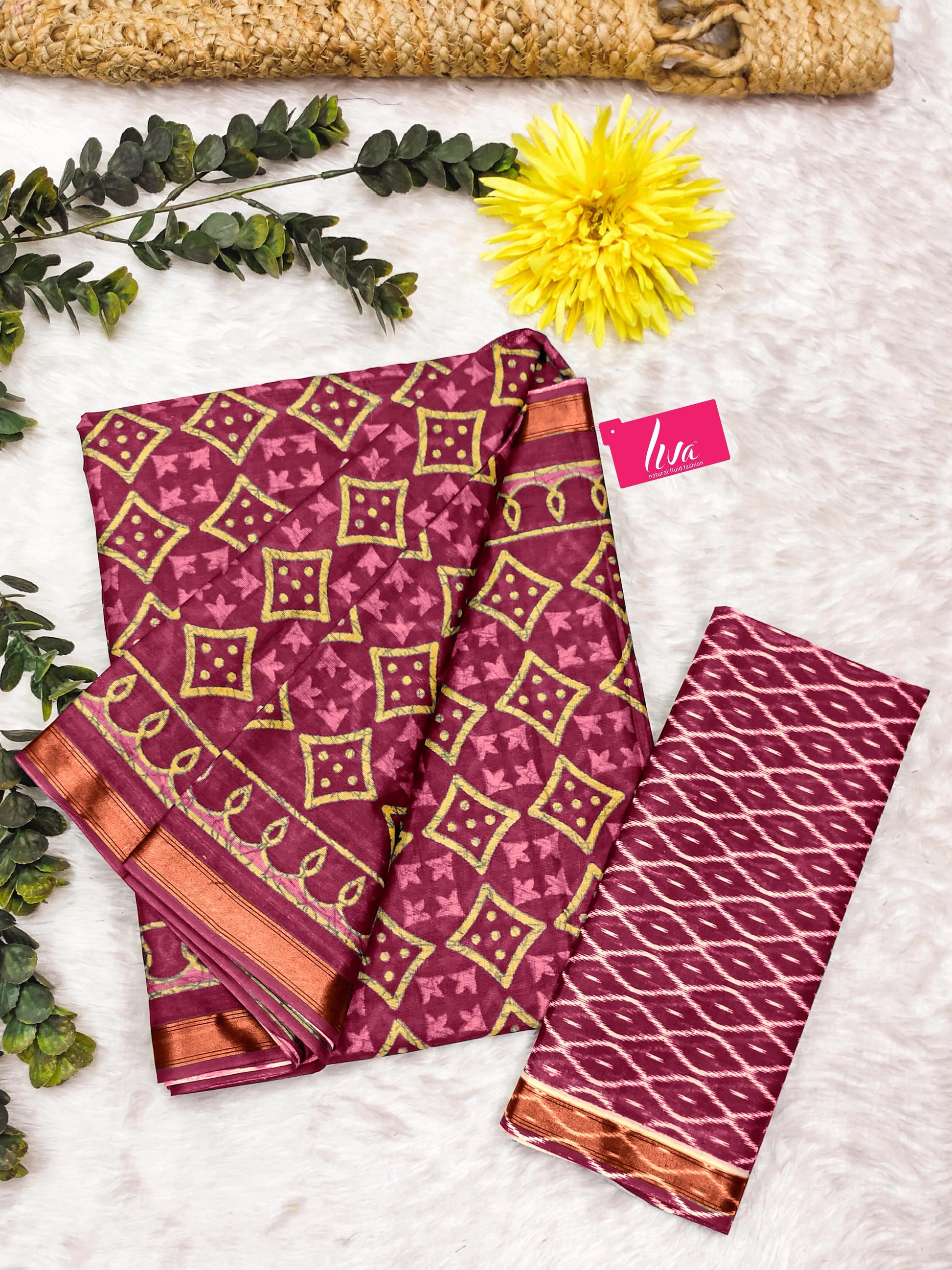 Blouse lenght:- 0.80 mtr Printed sam as photo with zari border