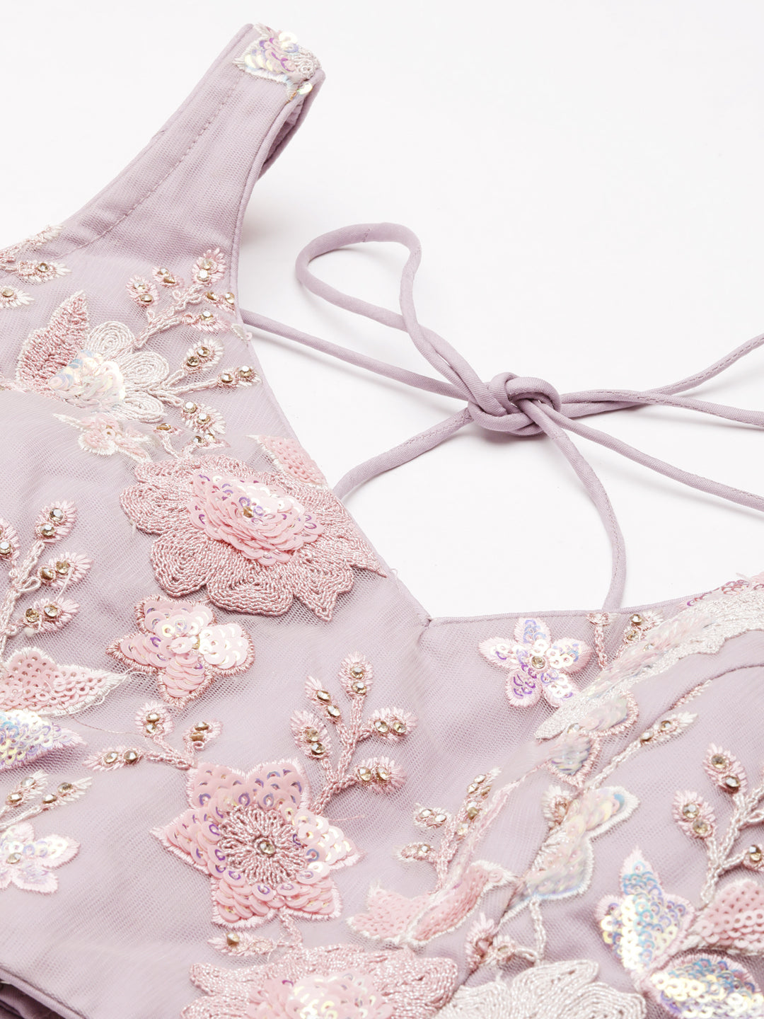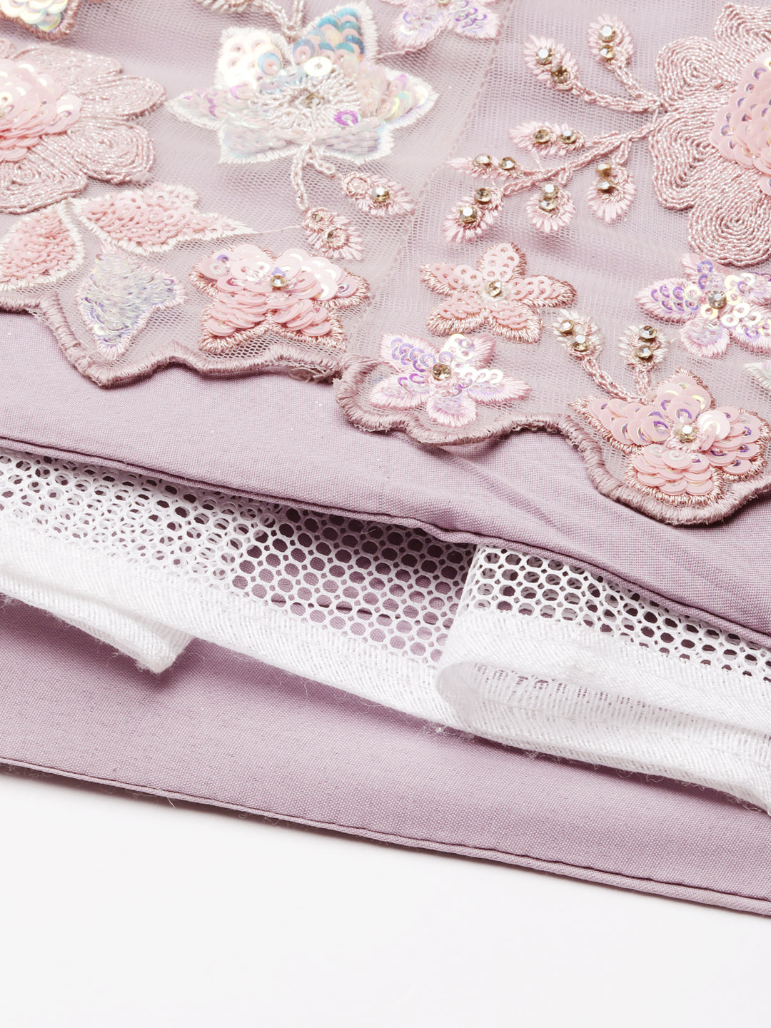 Mauve Net Floral Sequins Lehenga Choli with Heavy Zarkan Embroidery and Dupatta