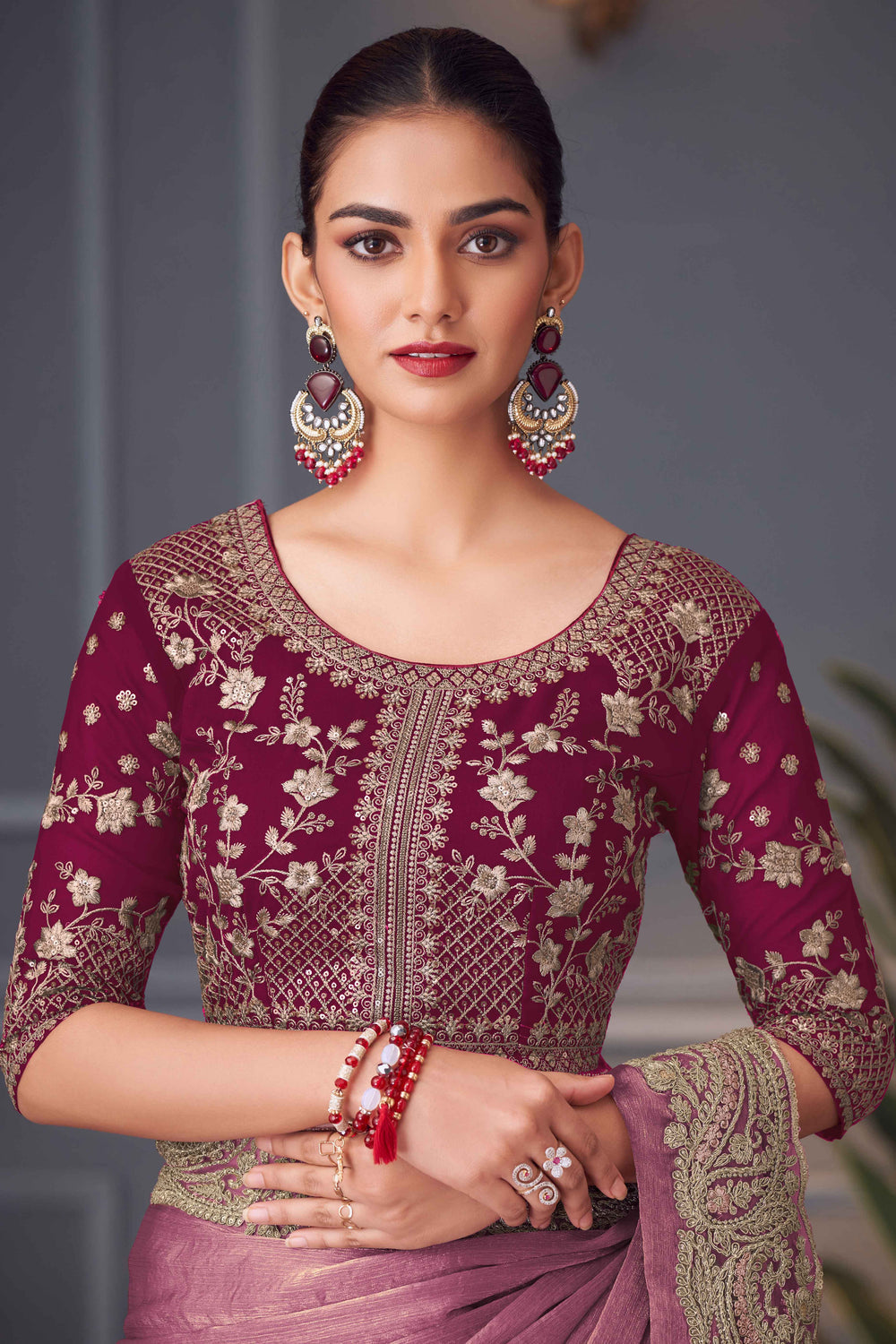 Mauve Pure Georgette Chiffon With Embroidery Sequins Saree