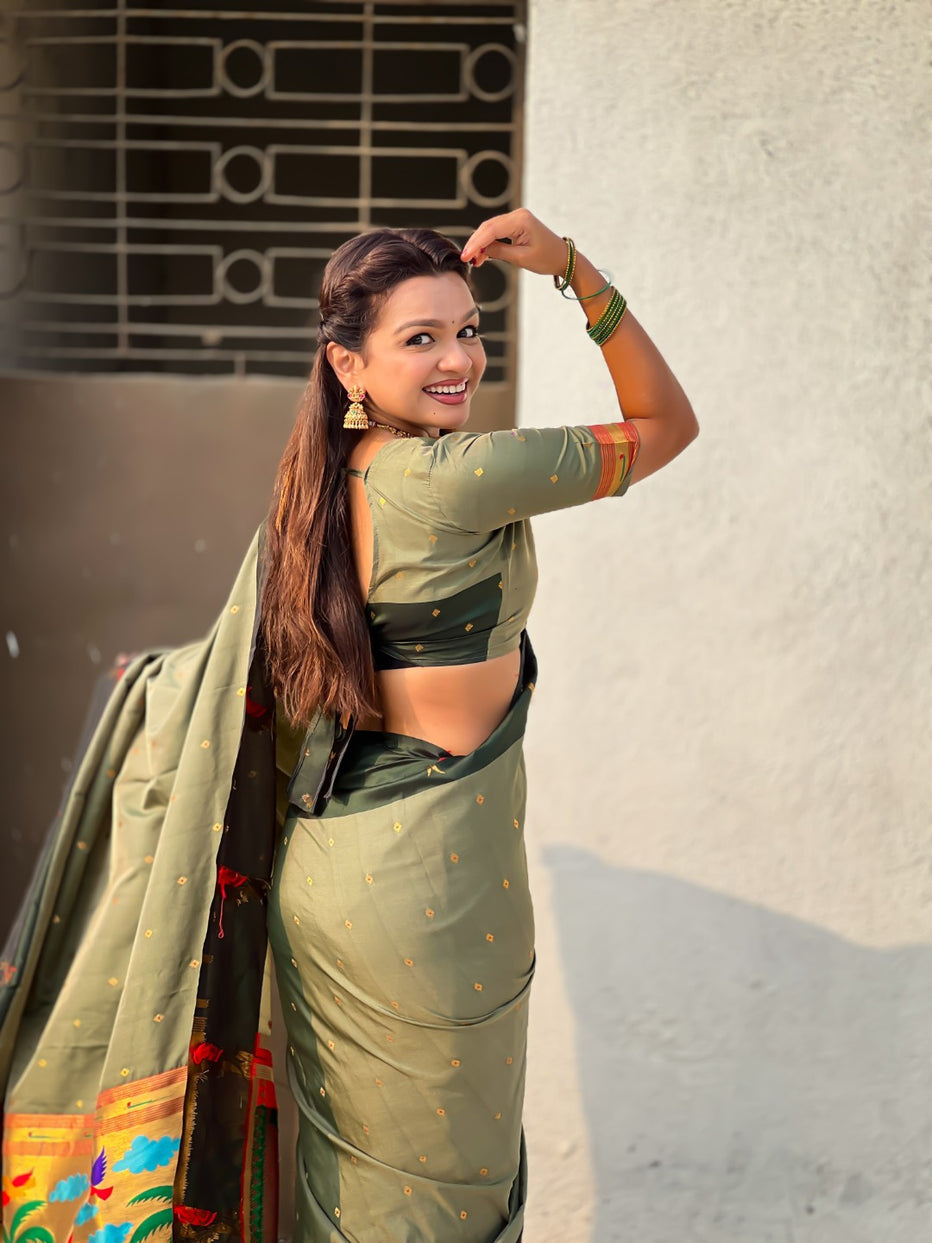 Mehandi Premium Soft Silk Pichwai Nature Zari Weaving Saree