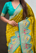 Mehendi Green Pashmina Darbari Silk Zari Banarasi Saree
