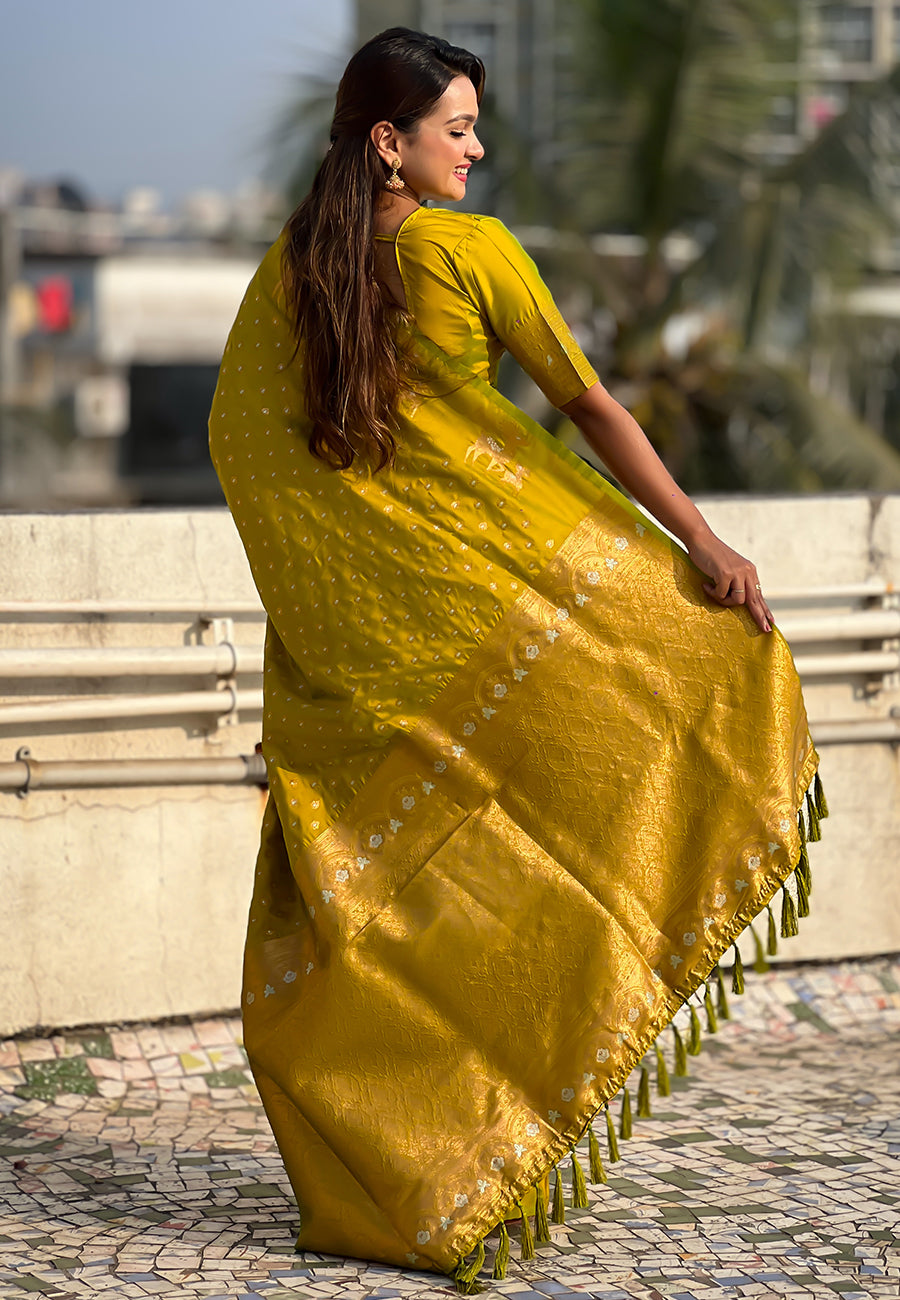 Mehendi Green Soft Silk Dual Zari Woven Soft Silk Saree