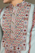 Upgrade your ethnic collection with this sky blue embroidered kurta pajama set for men. Crafted from premium viscose silk, the outfit features intricate thread and sequence embroidery, giving it a rich festive appeal. The matching pajama ensures a perfect coordinated look, making it an excellent choice for weddings, receptions, sangeet nights, and festive occasions.