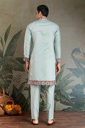 Menβs Sky Blue Embroidered Silk Kurta Pajama Set