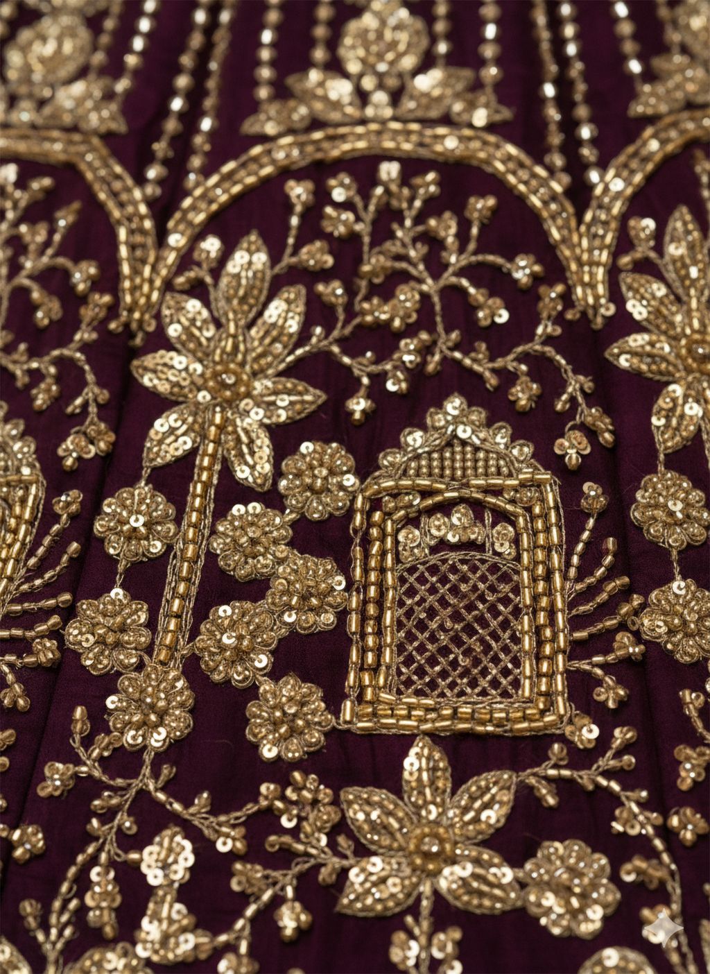 Merlot Pure Soft Net Heavy Embroidery Work Bridal Lehenga
