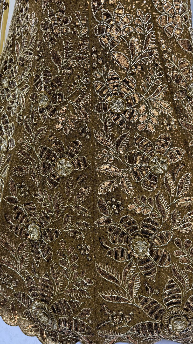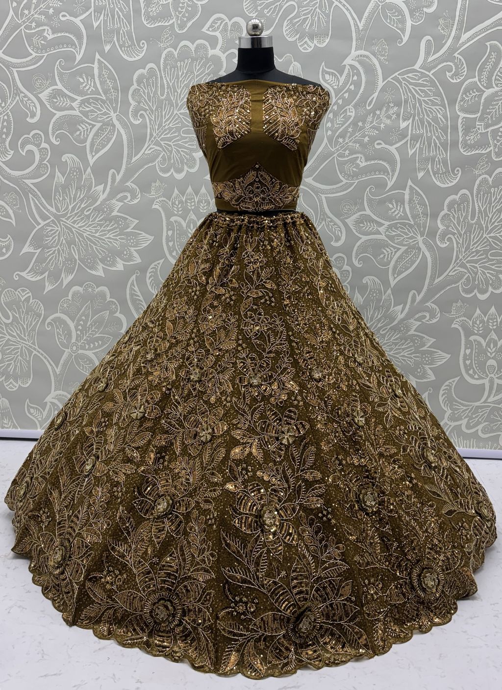 Metallic Gold Pure Soft Net Heavy Embroidery Work Bridal Lehenga