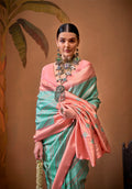 Mint Green and Peach Handloom Weaving Silk Saree with Handloom Silk Blouse