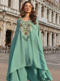 Mint Green Real Chinon Silk Palazzo Suit with Embroidery