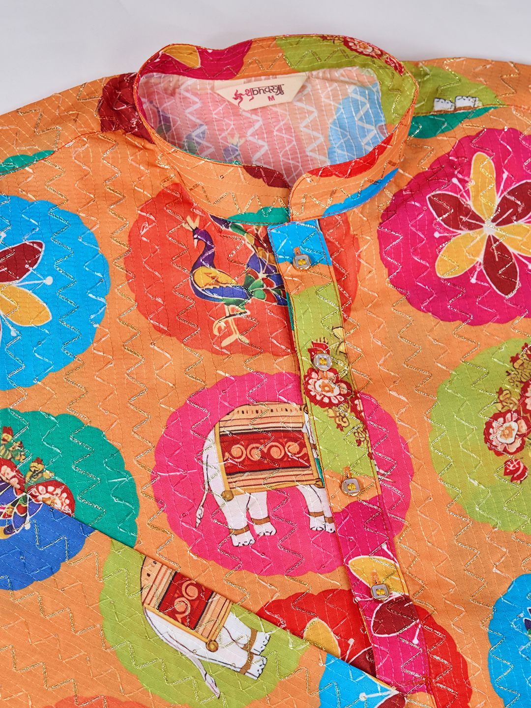 Multicoloured Pure Heavy Reyon Silk with Embroidery Work Printed Kurta Pajama loading