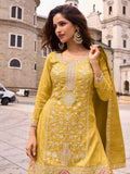 Mustard Yellow Embroidered Simar Silk Palazzo Suit