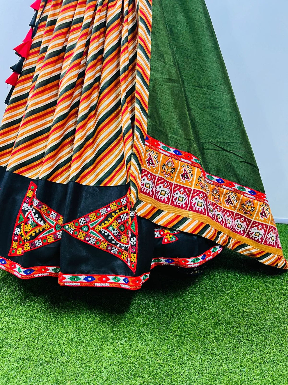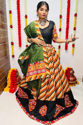 LEHENGA WORK: PATOLA PRINT WITH GAMTHI WORK BUTTA & LACE WORK