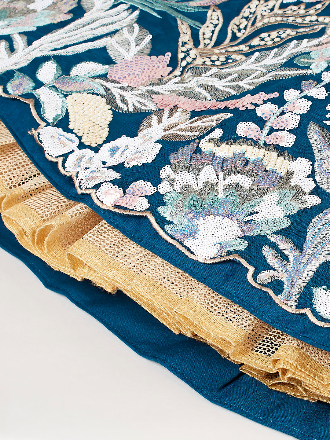 Navy Blue Floral Net Sequin Work Lehenga & Unstitched Blouse with Dupatta