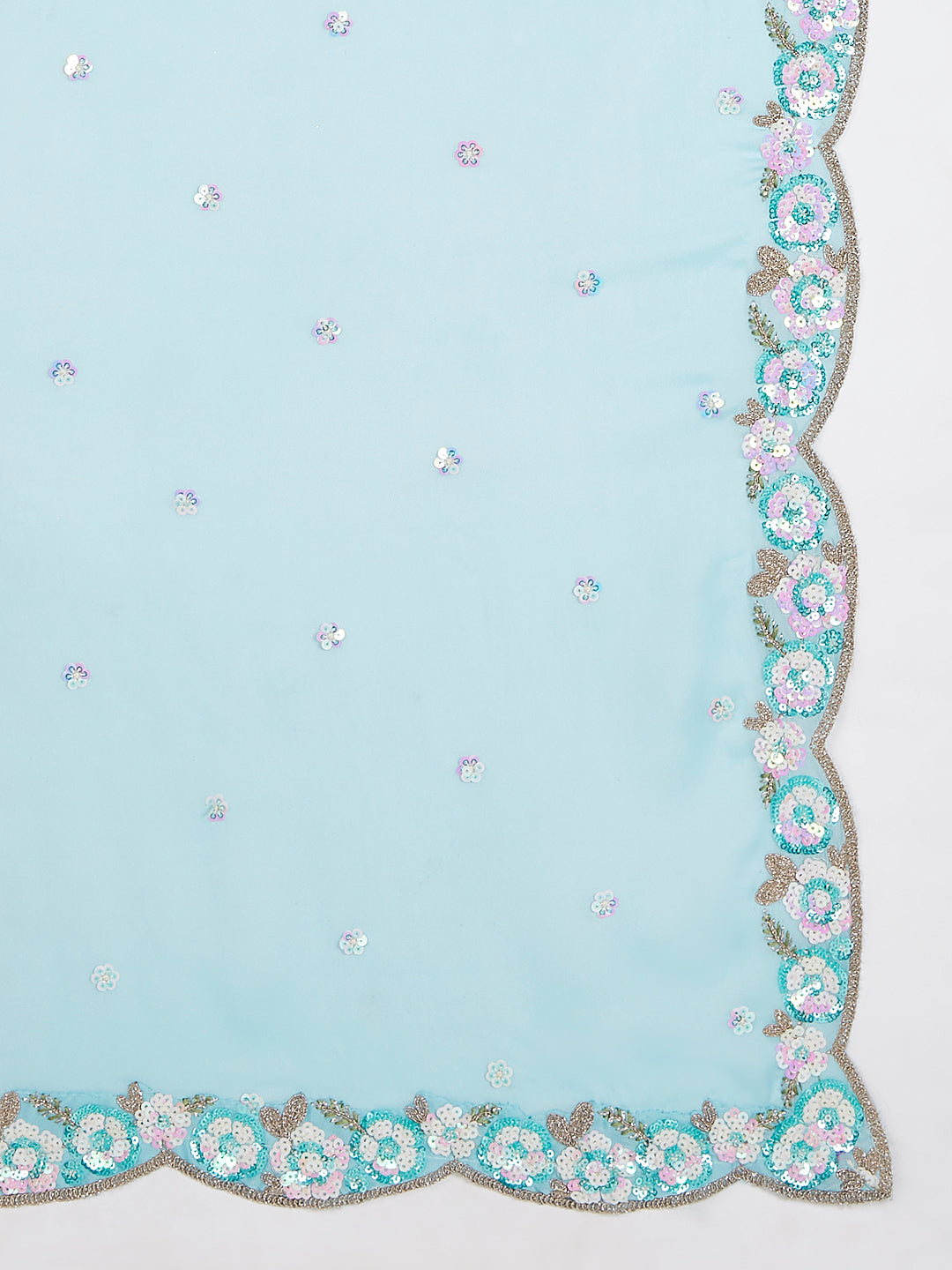 Navy Blue Georgette Sequins & Thread Embroidery Lehenga Choli & Dupatta