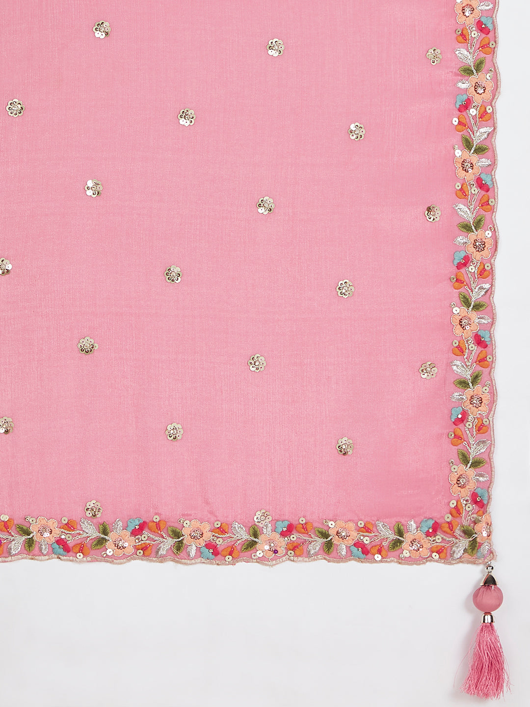 Navy Blue Organza Sequins Thread Embroidery Lehenga Choli & Dupatta