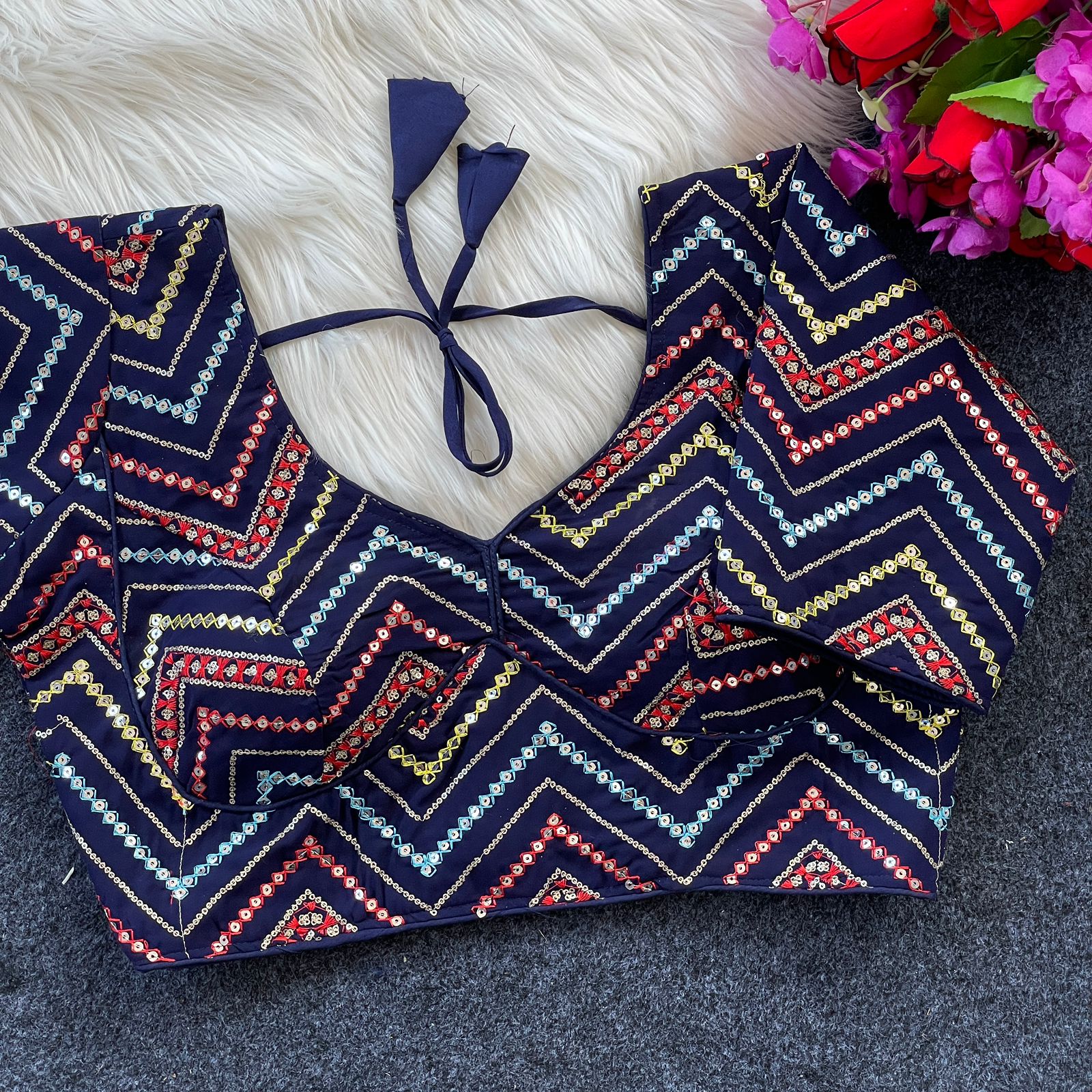 Navy Blue Pure Georgette Viscose Sabyasachi Style Wedding Blouse